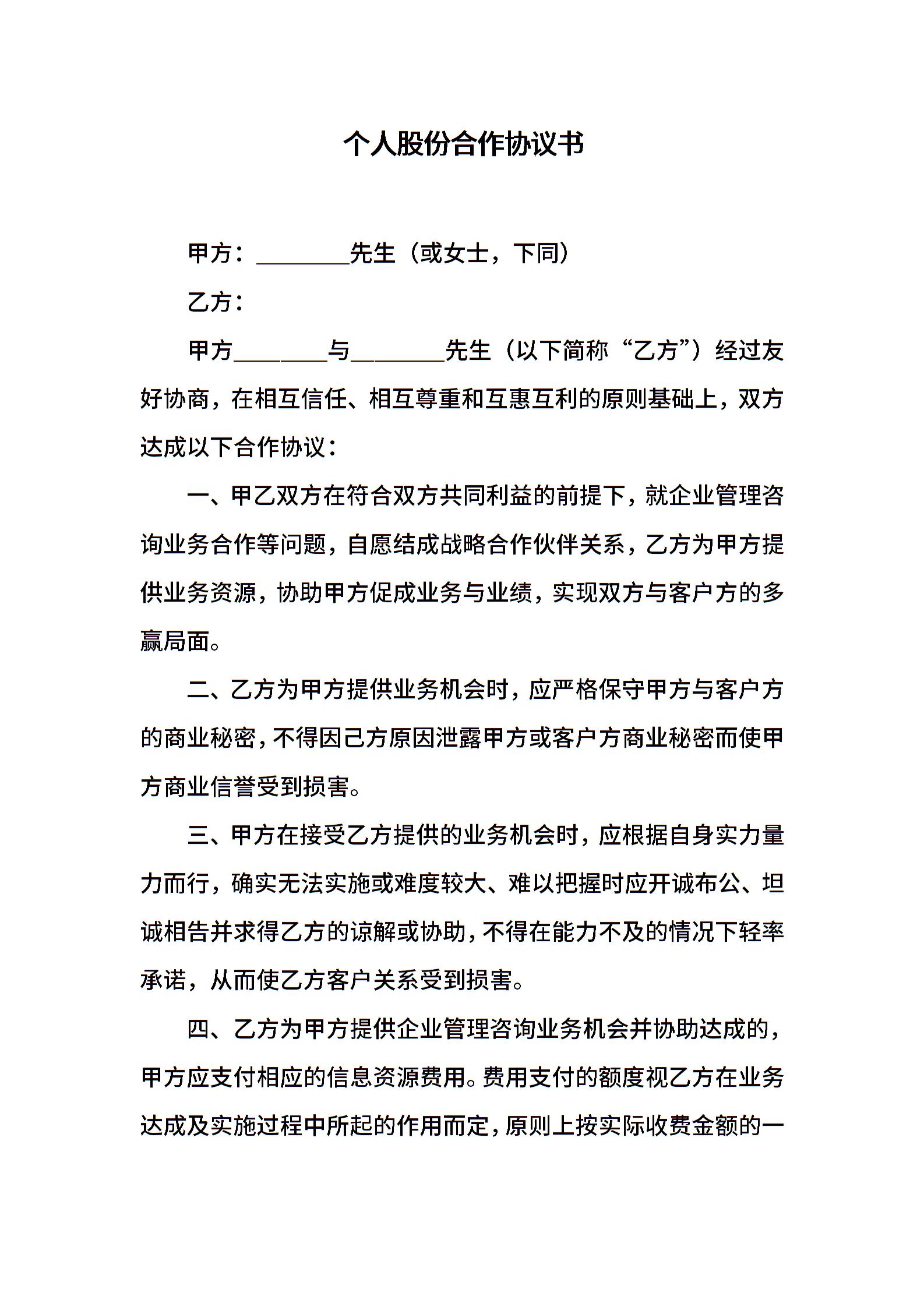 个人股份合作协议书