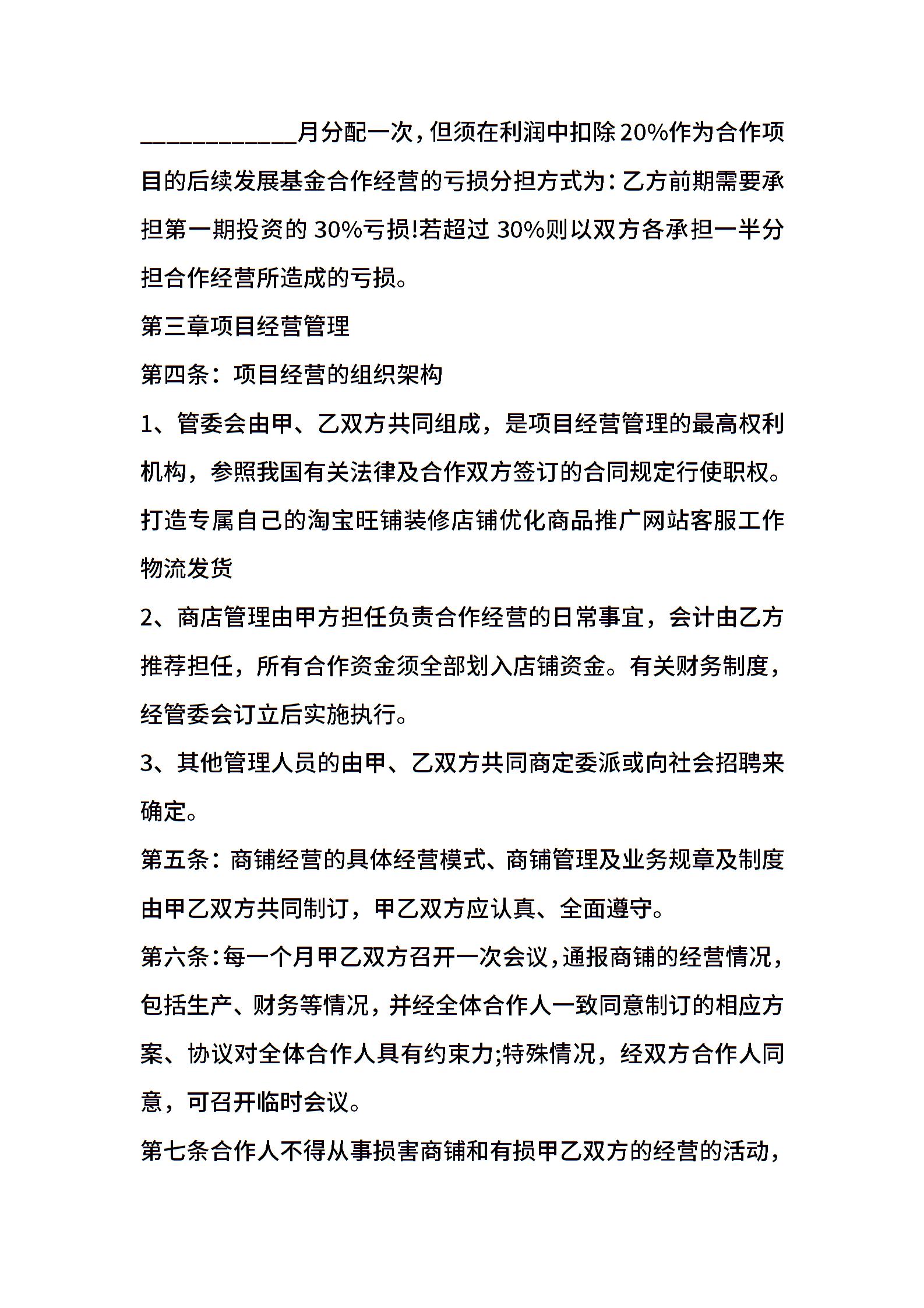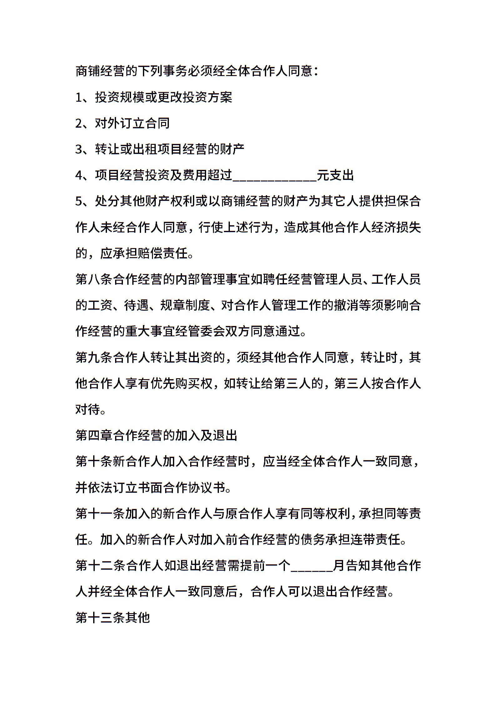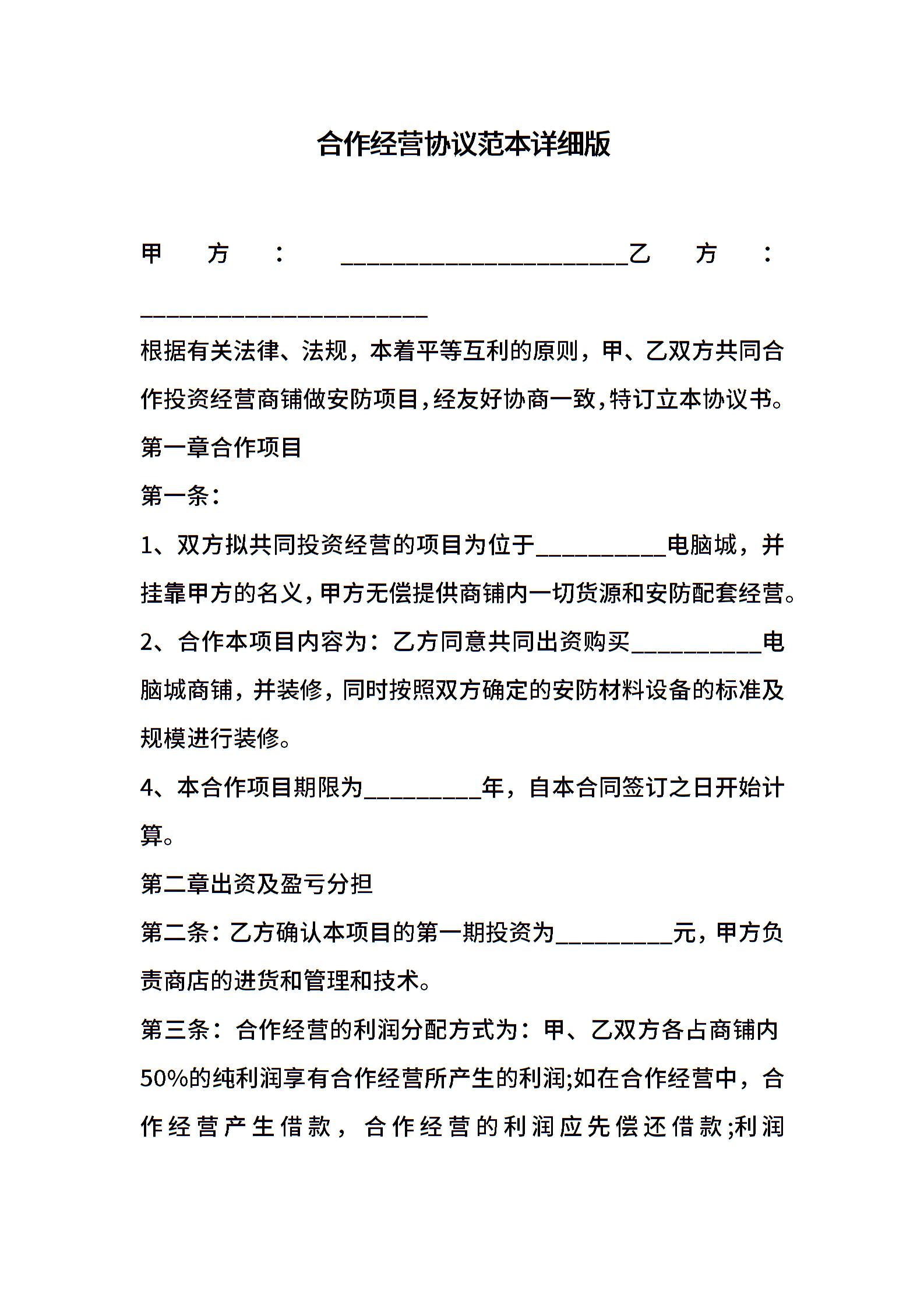 合作经营协议范本详细版