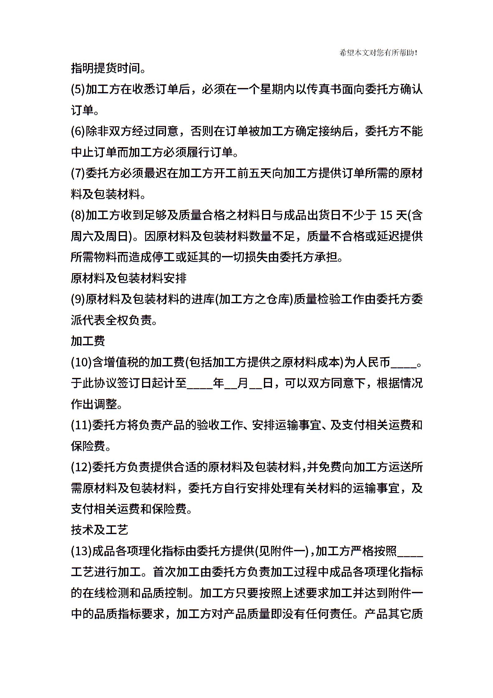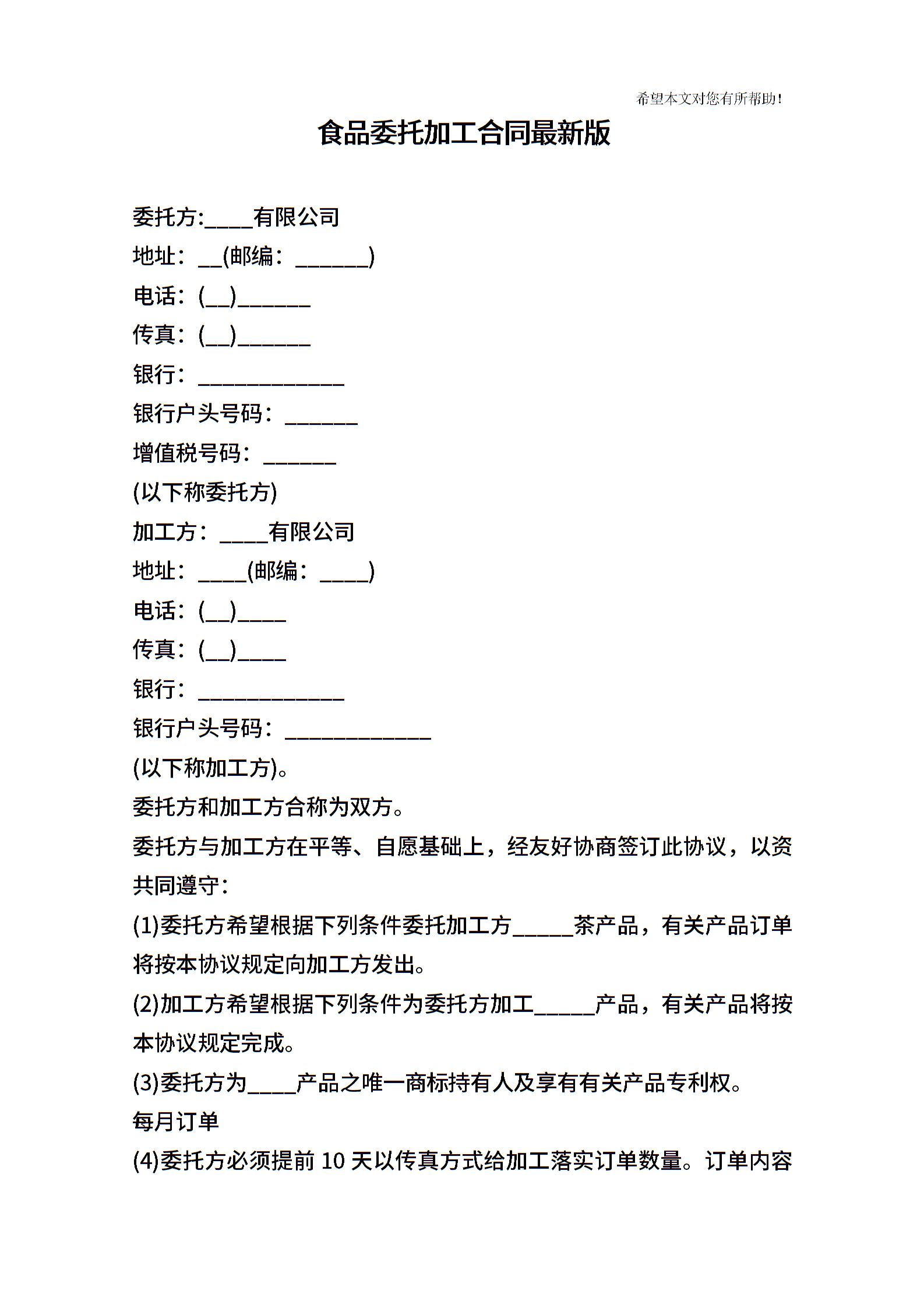 食品委托加工合同最新版