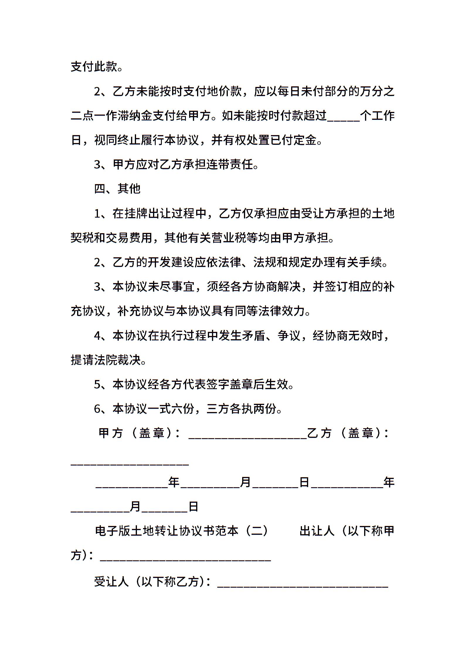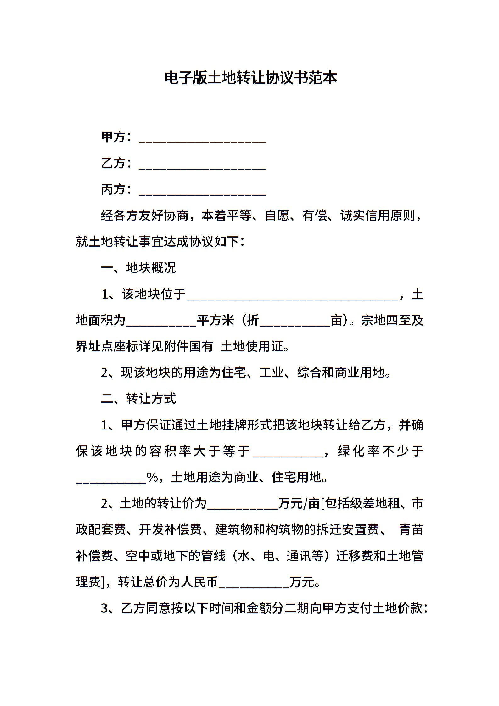 电子版土地转让协议书范本