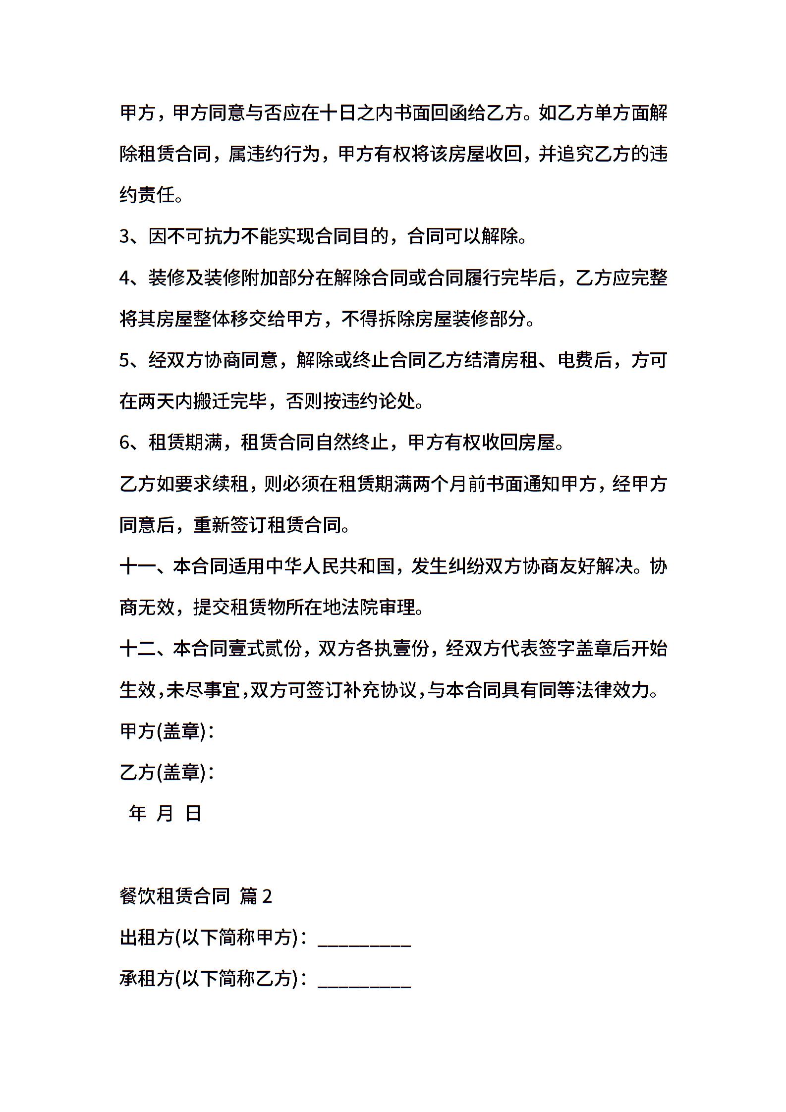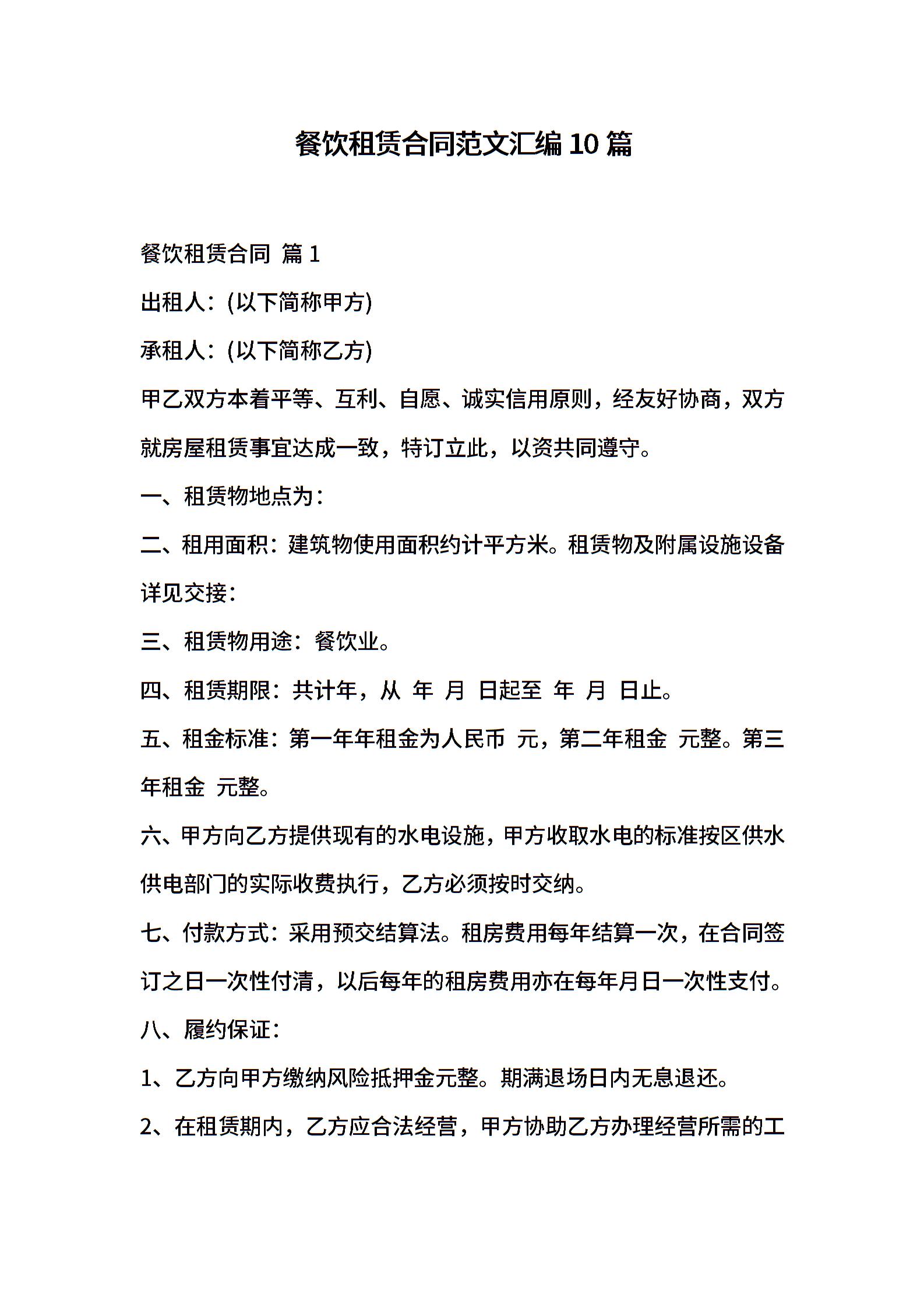 餐饮租赁合同范文汇编10篇