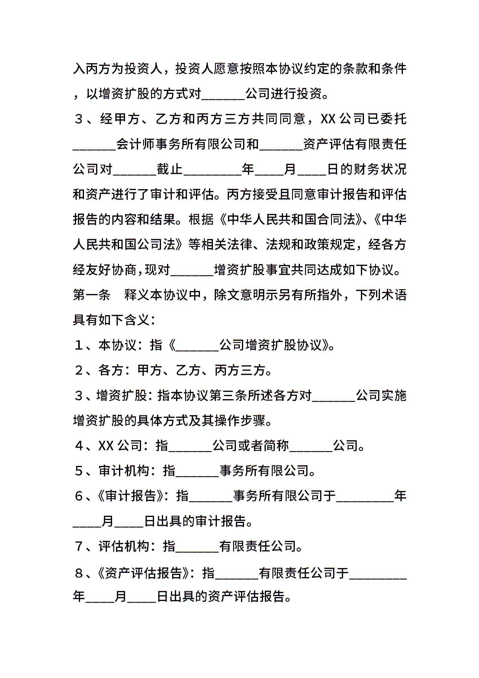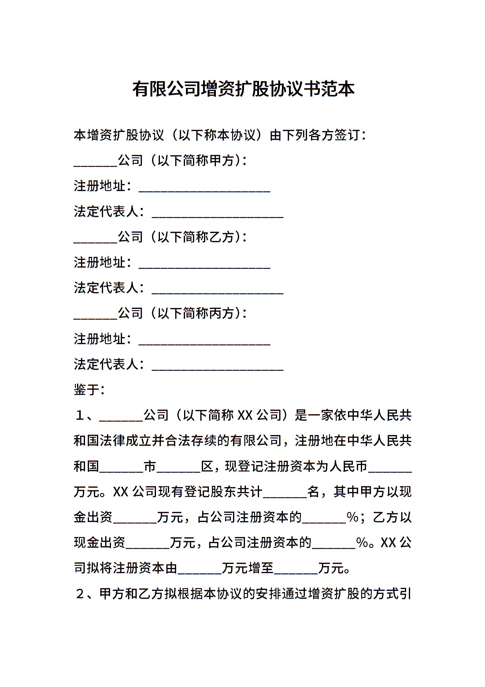 有限公司增资扩股协议书范本