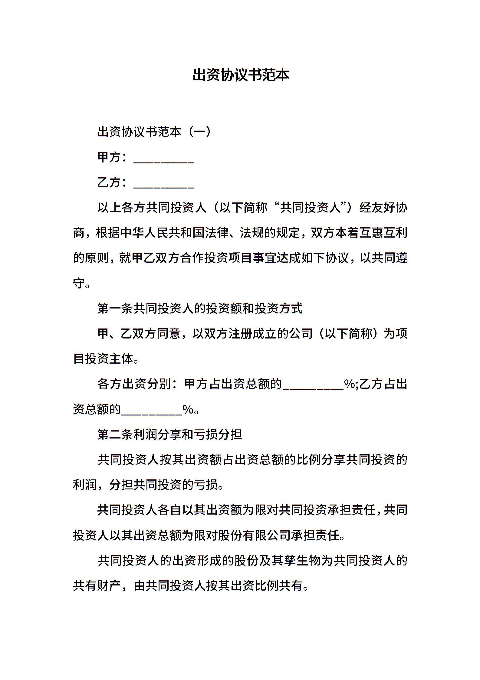 当前位置:量子办公 > 合同模板 > 出资协议 >