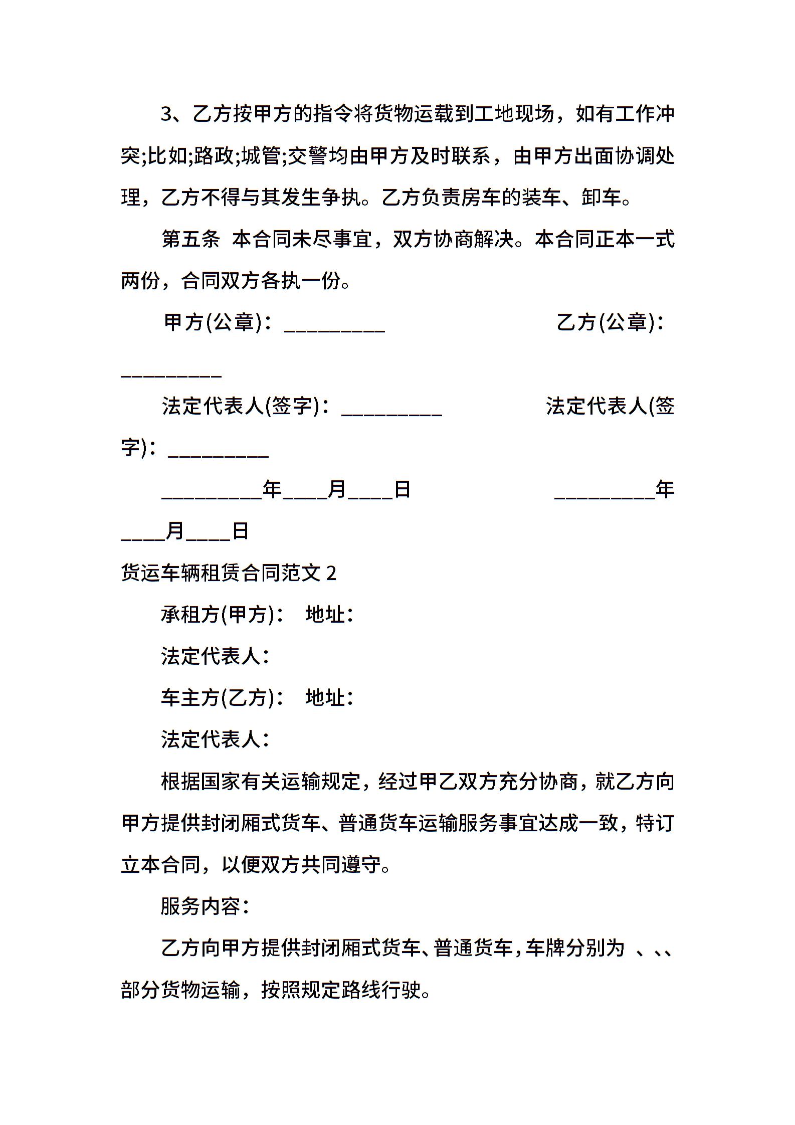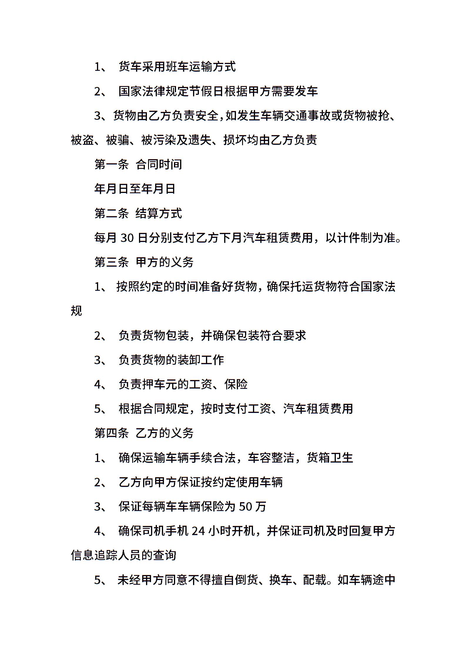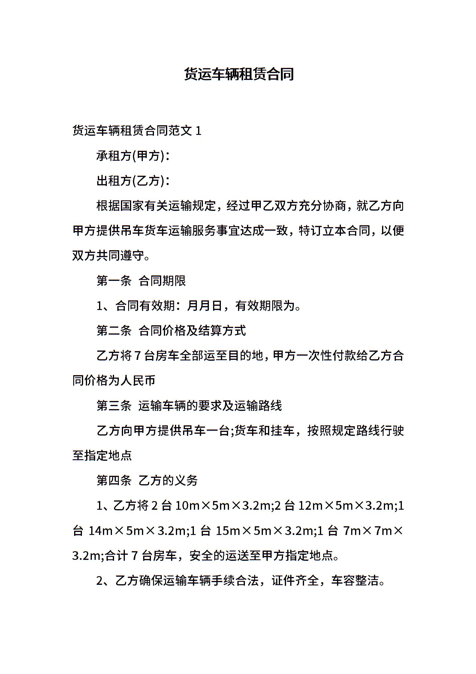货运车辆租赁合同