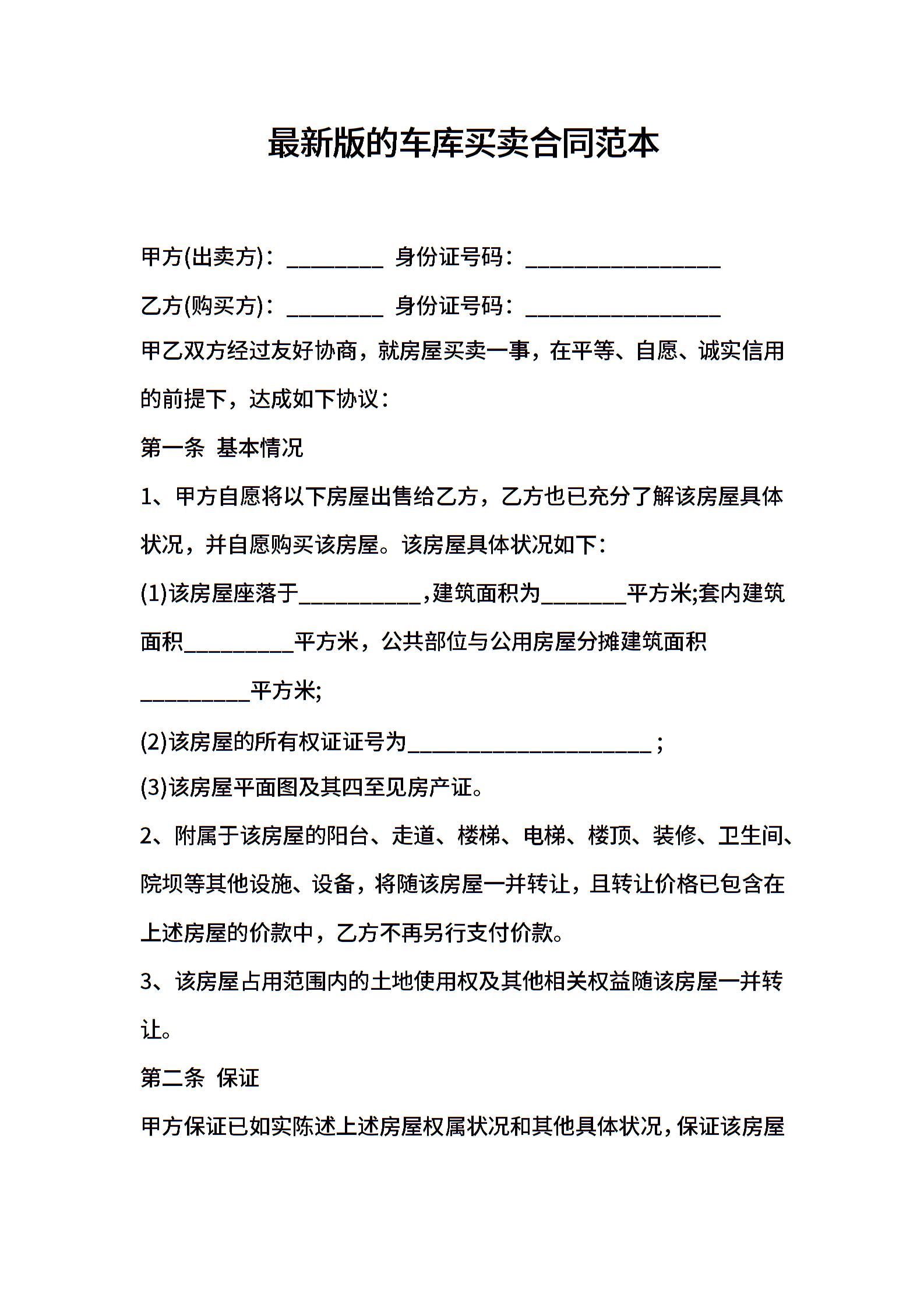 最新版的车库买卖合同范本