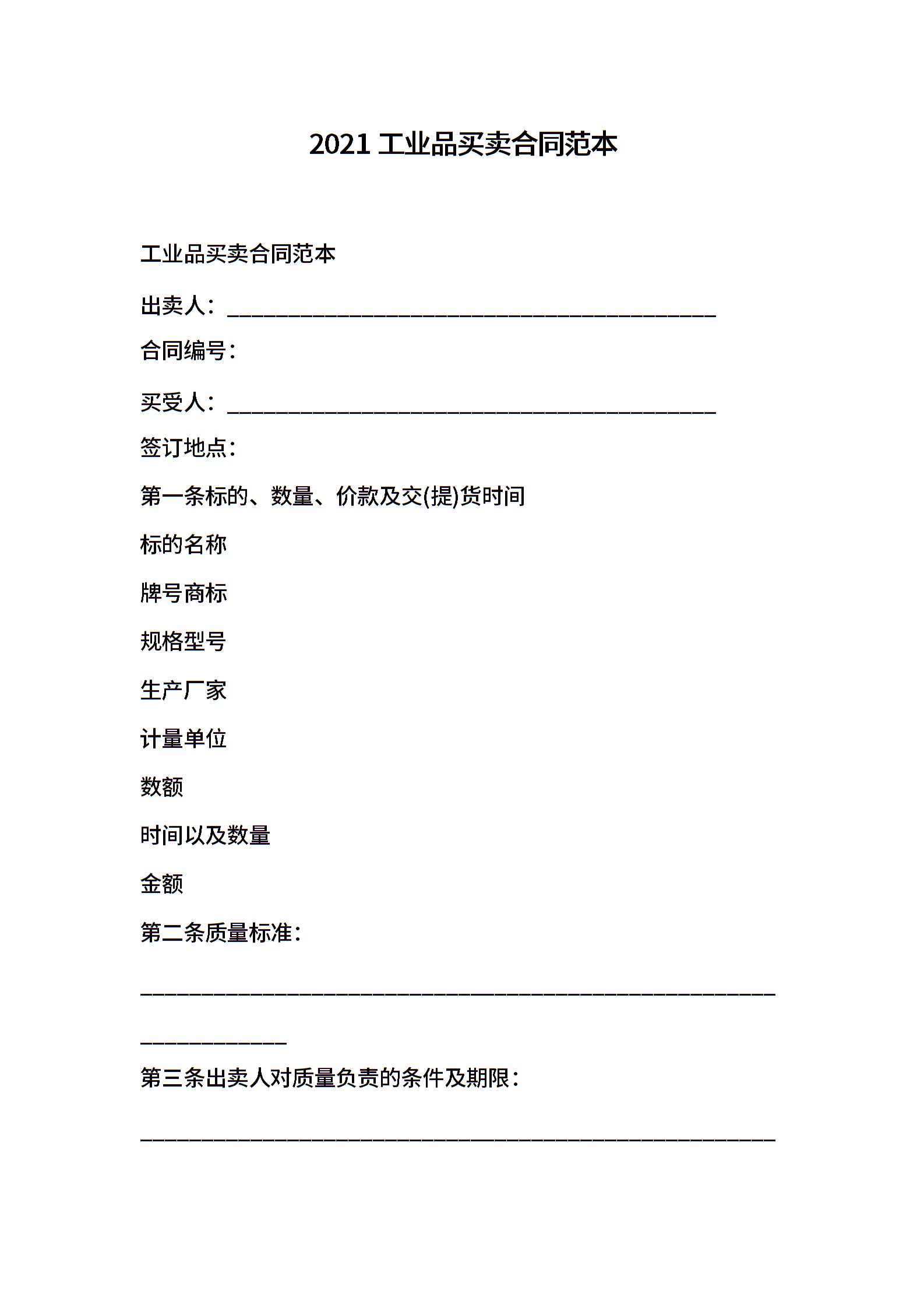 2021工业品买卖合同范本