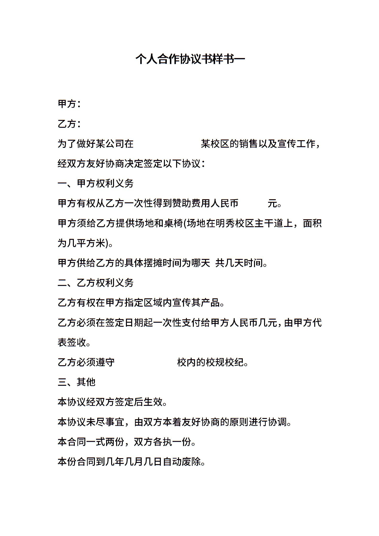 当前位置:量子办公 > 合同模板 > 合作合同 >