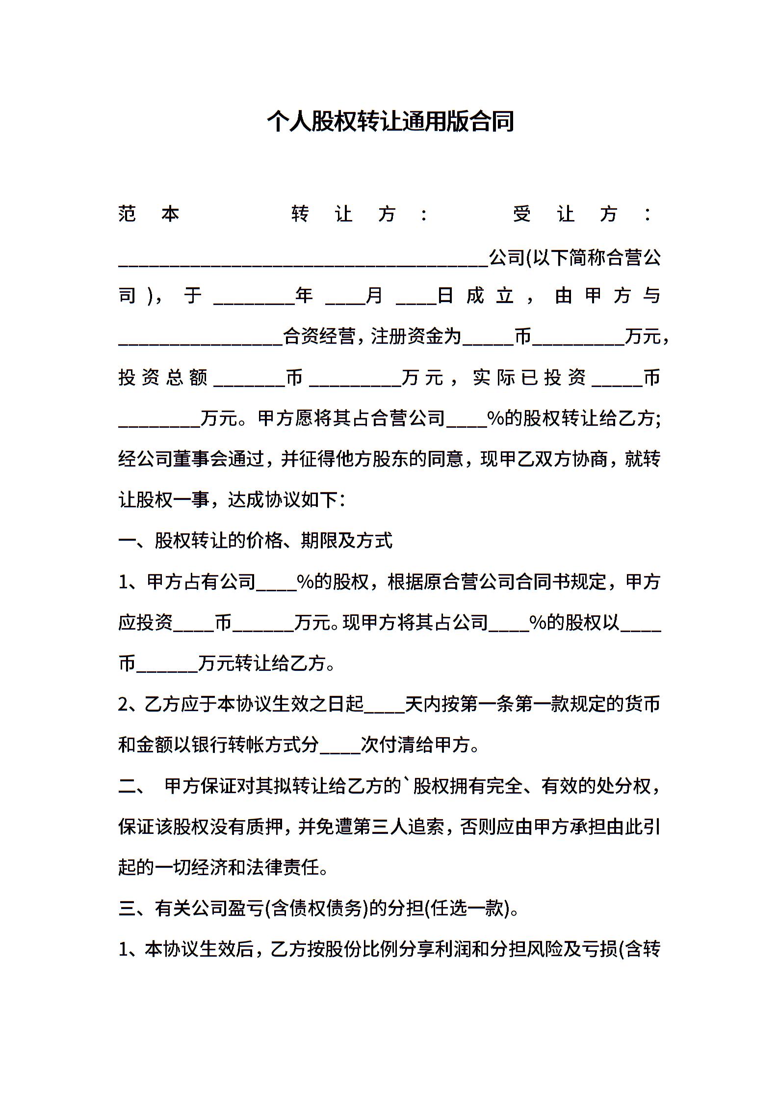 当前位置:量子办公 > 合同模板 > 股权转让协议 >