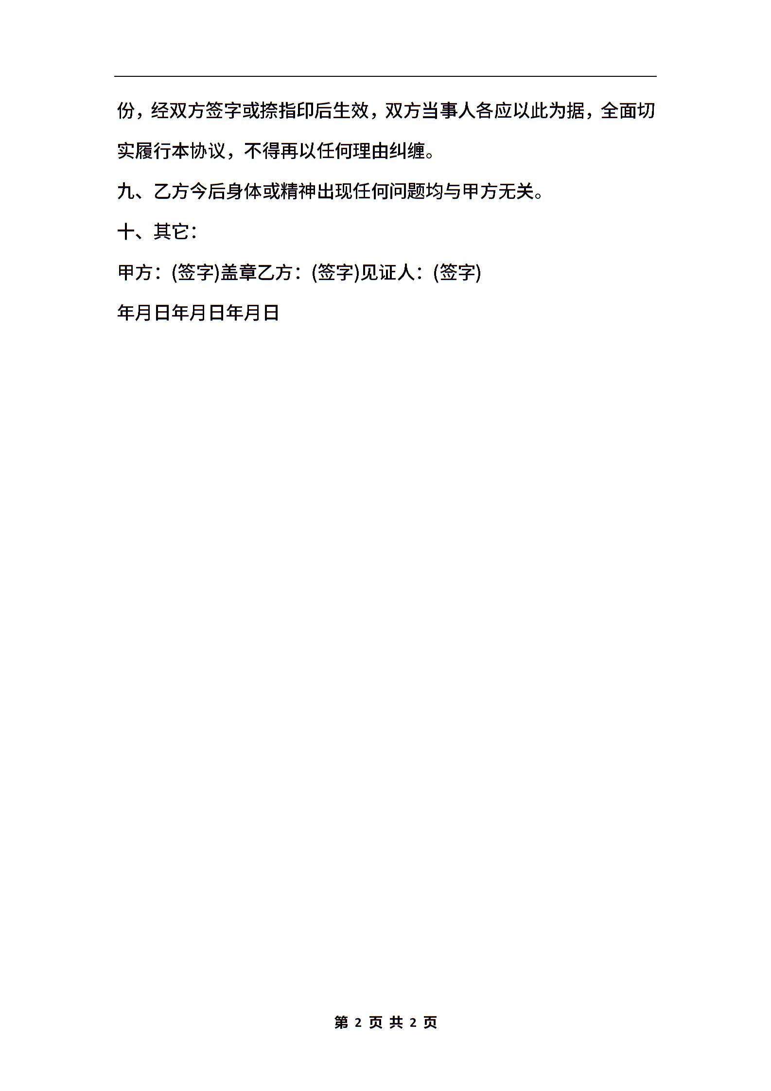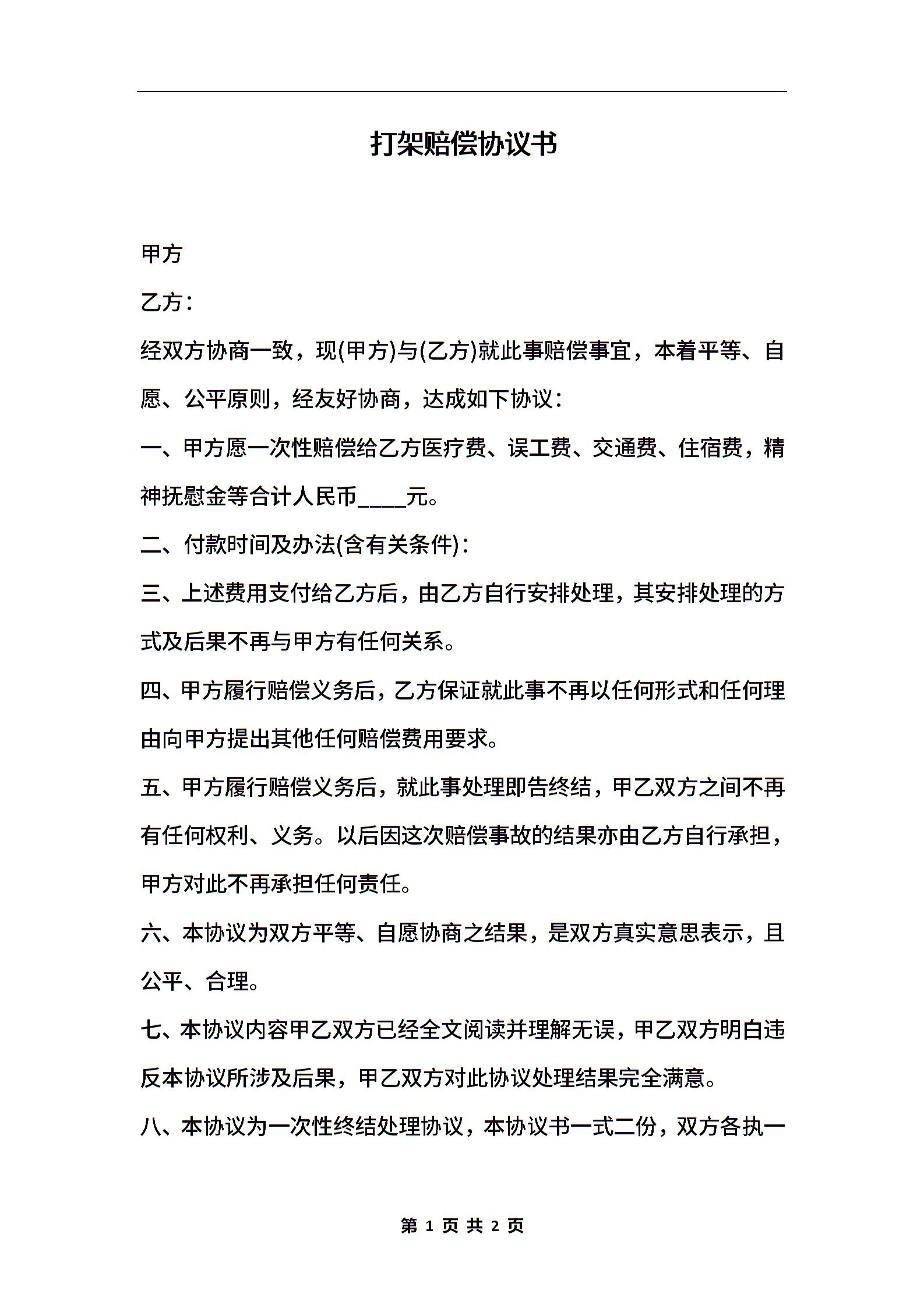 打架赔偿协议书