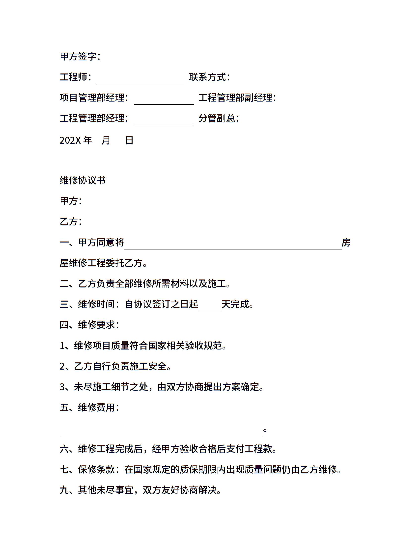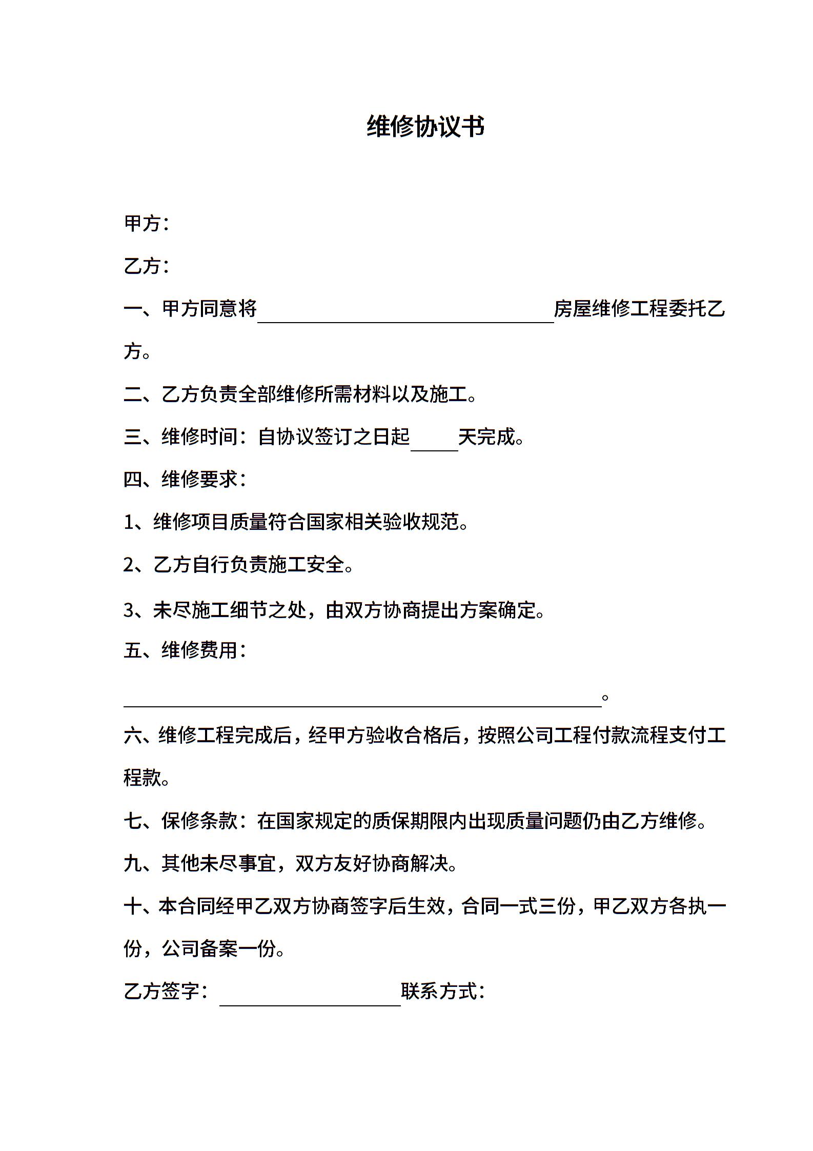 房屋维修协议书
