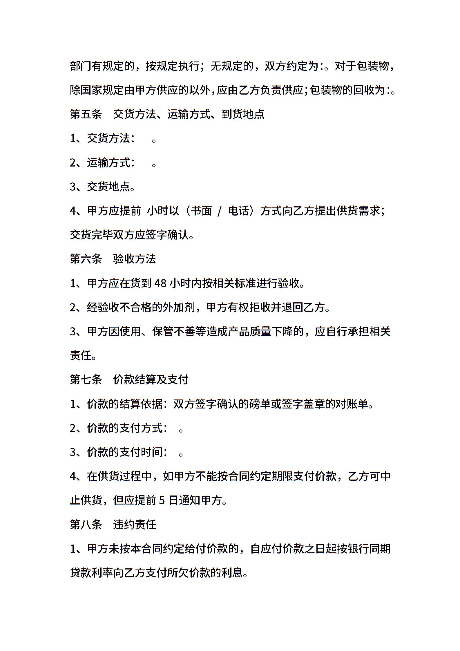 北京市混凝土外加剂买卖合同
