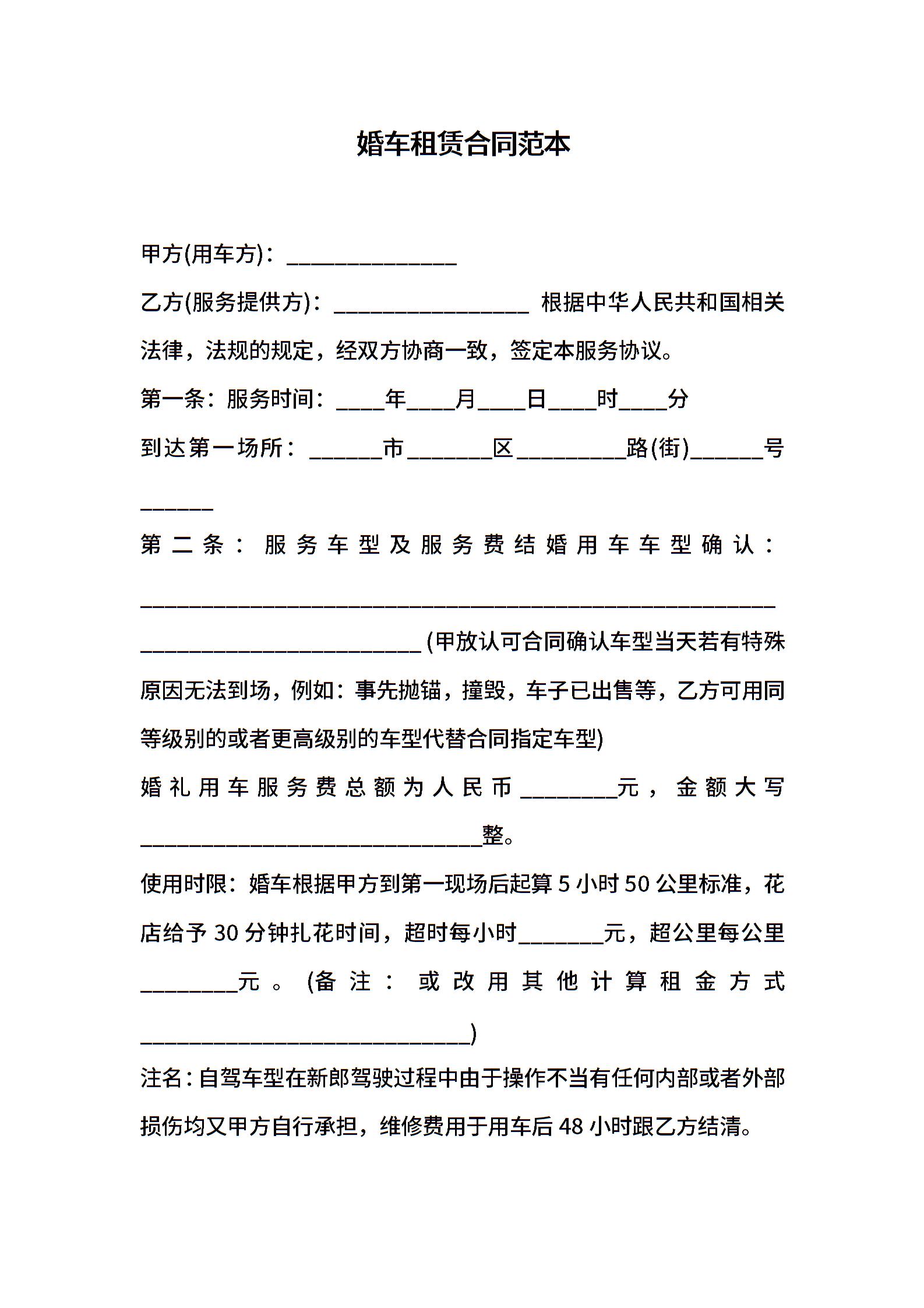 婚车租赁合同范本