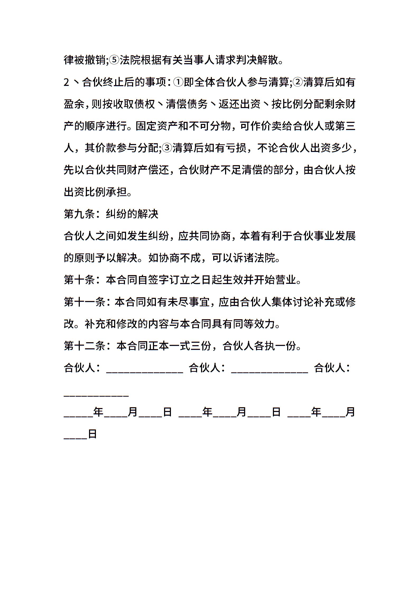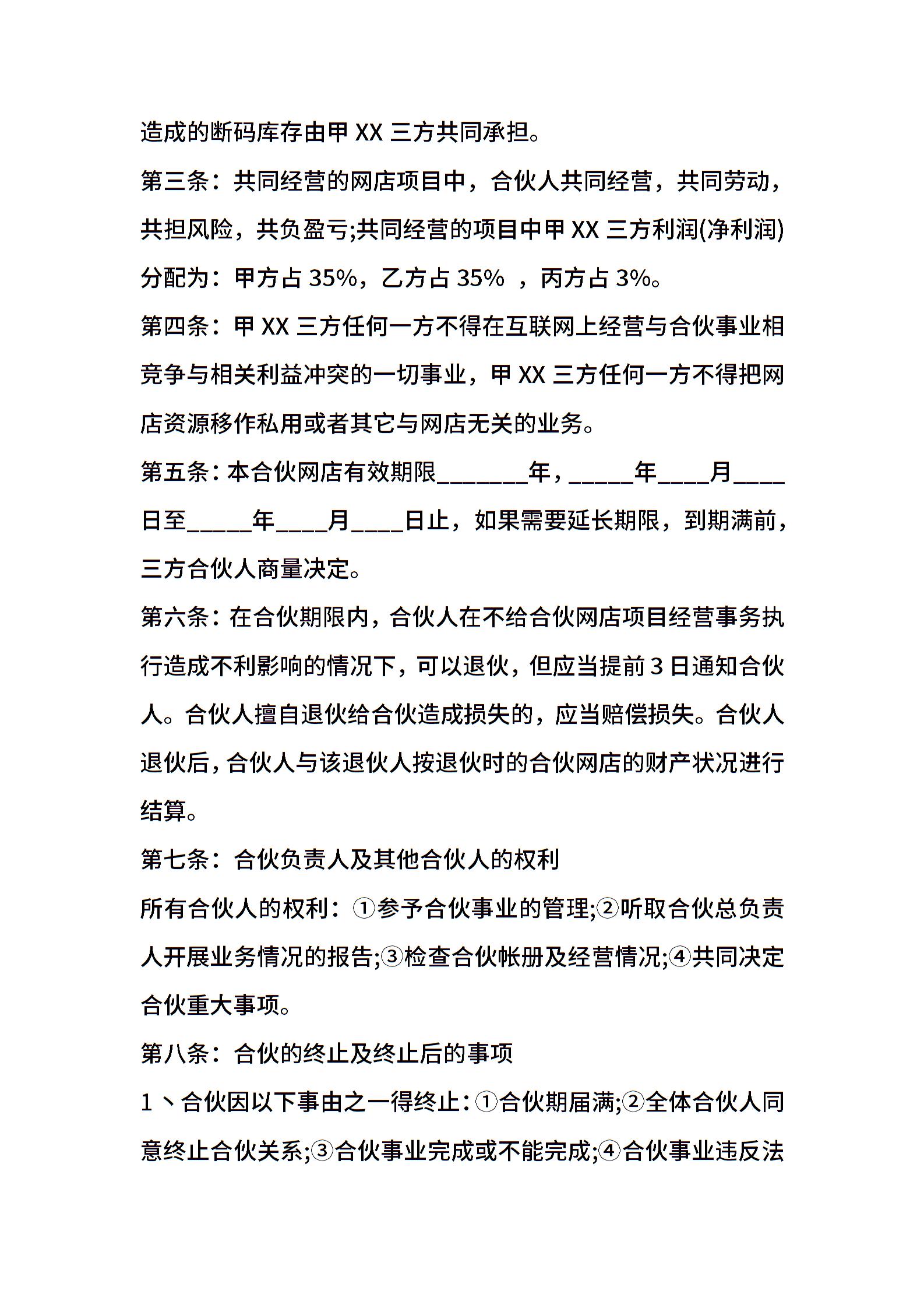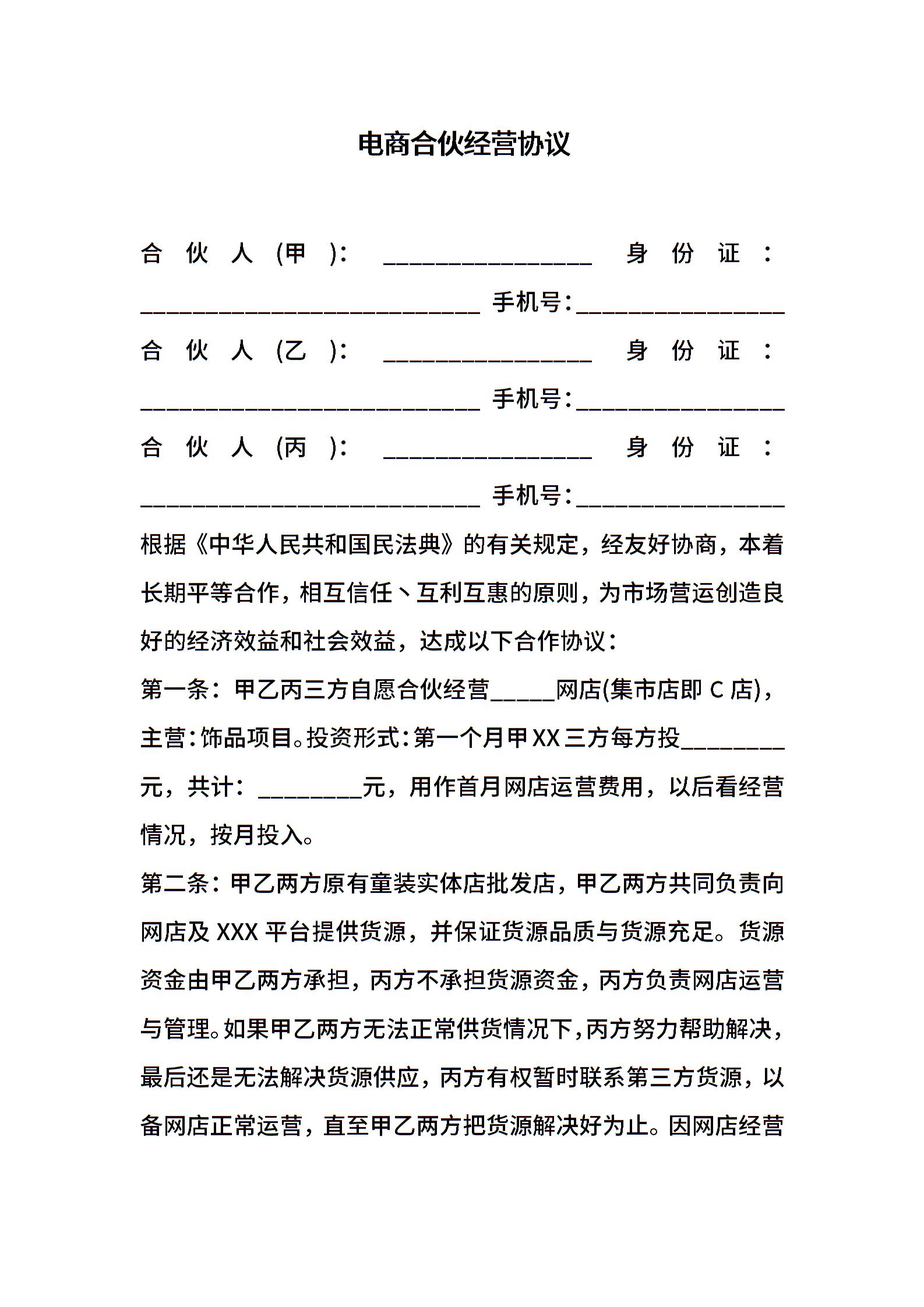 电商合伙经营协议