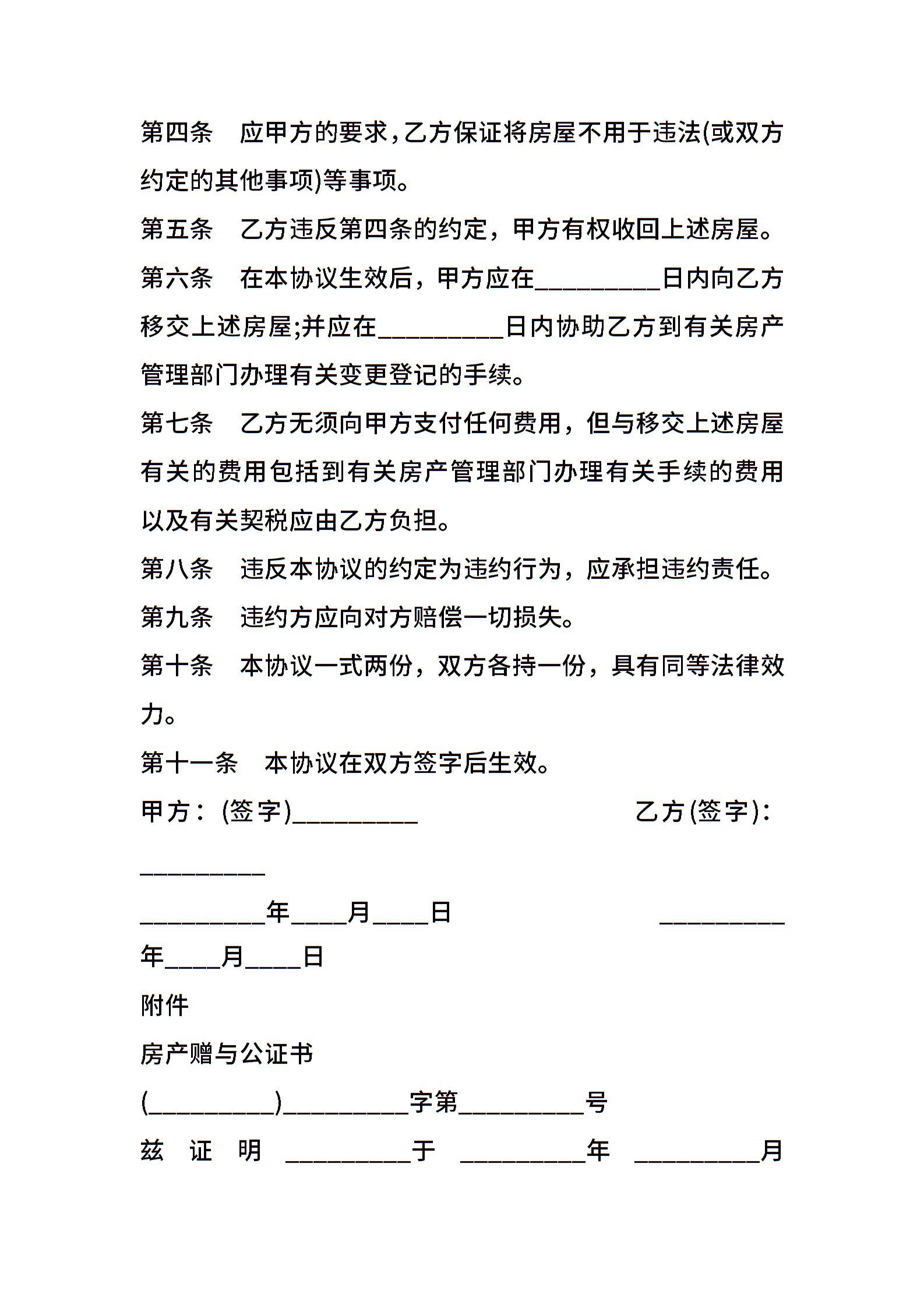 通用房屋赠与合同范本