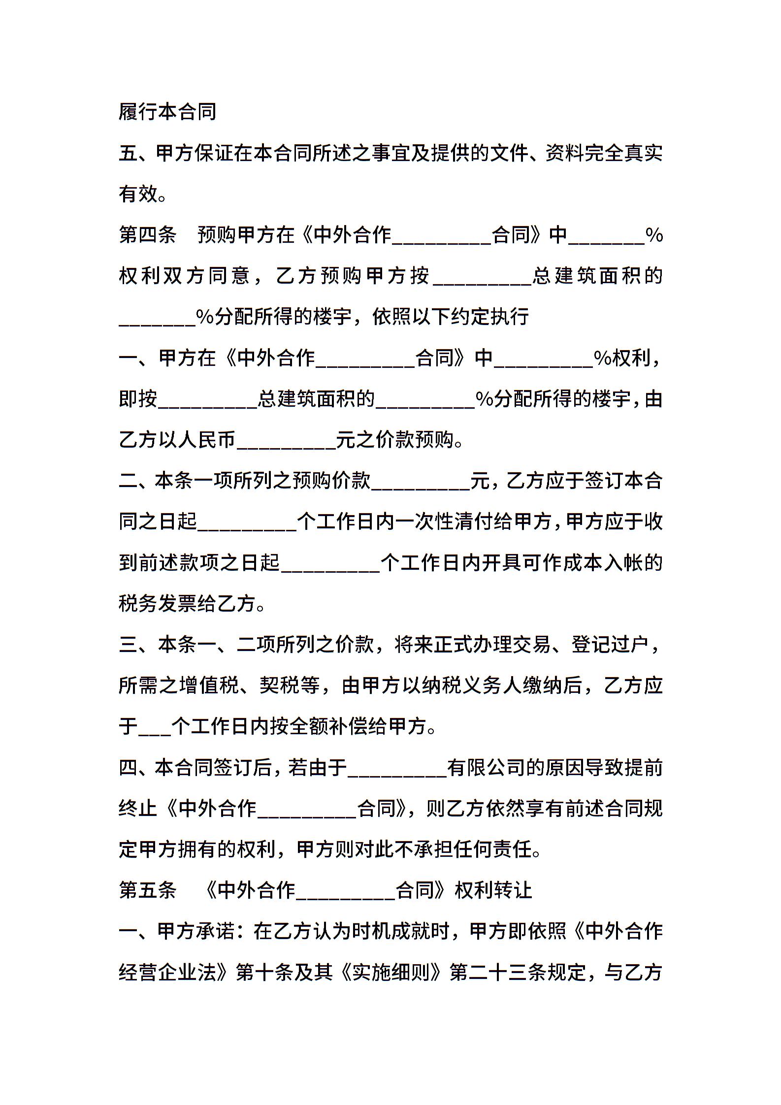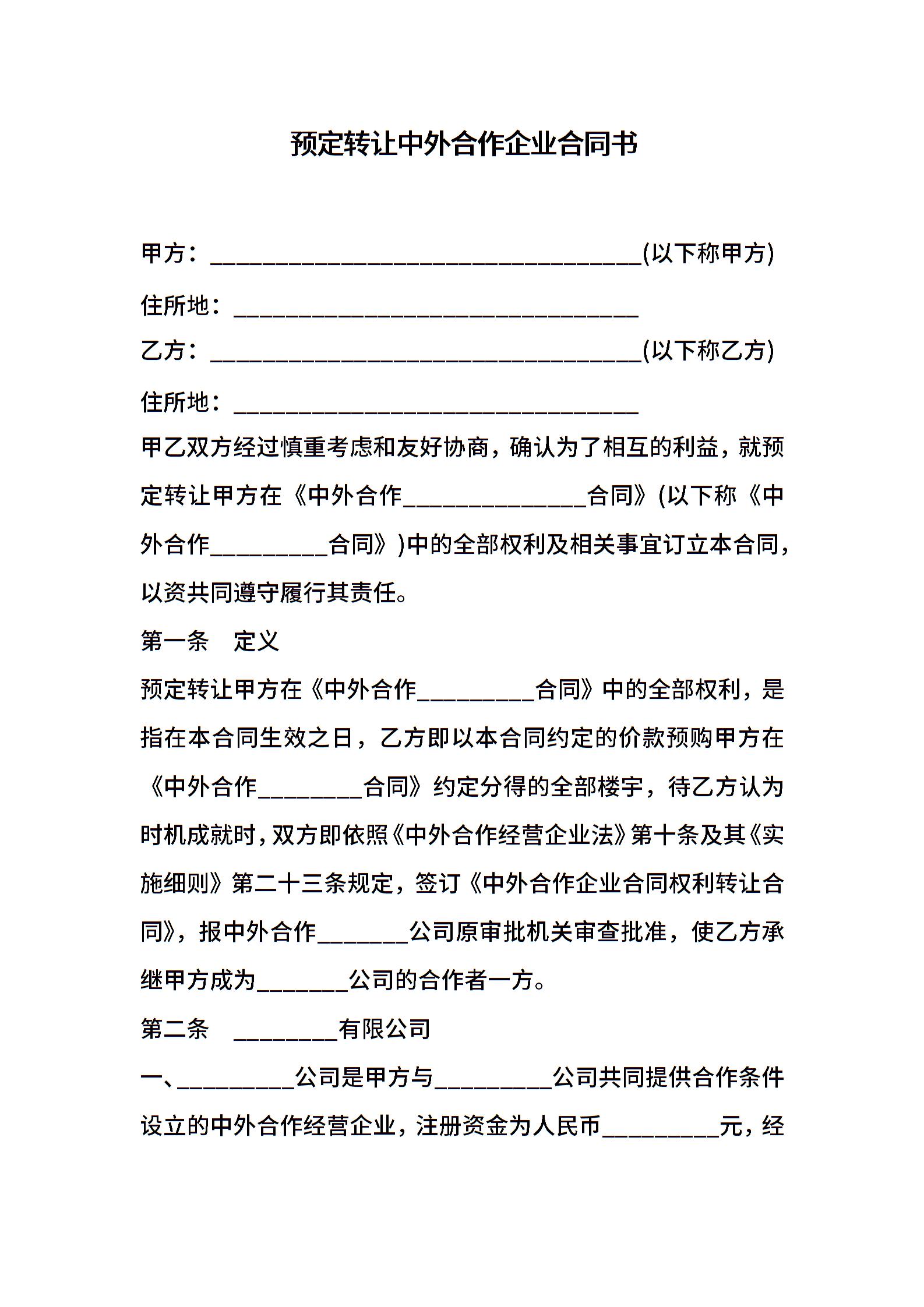 预定转让中外合作企业合同书