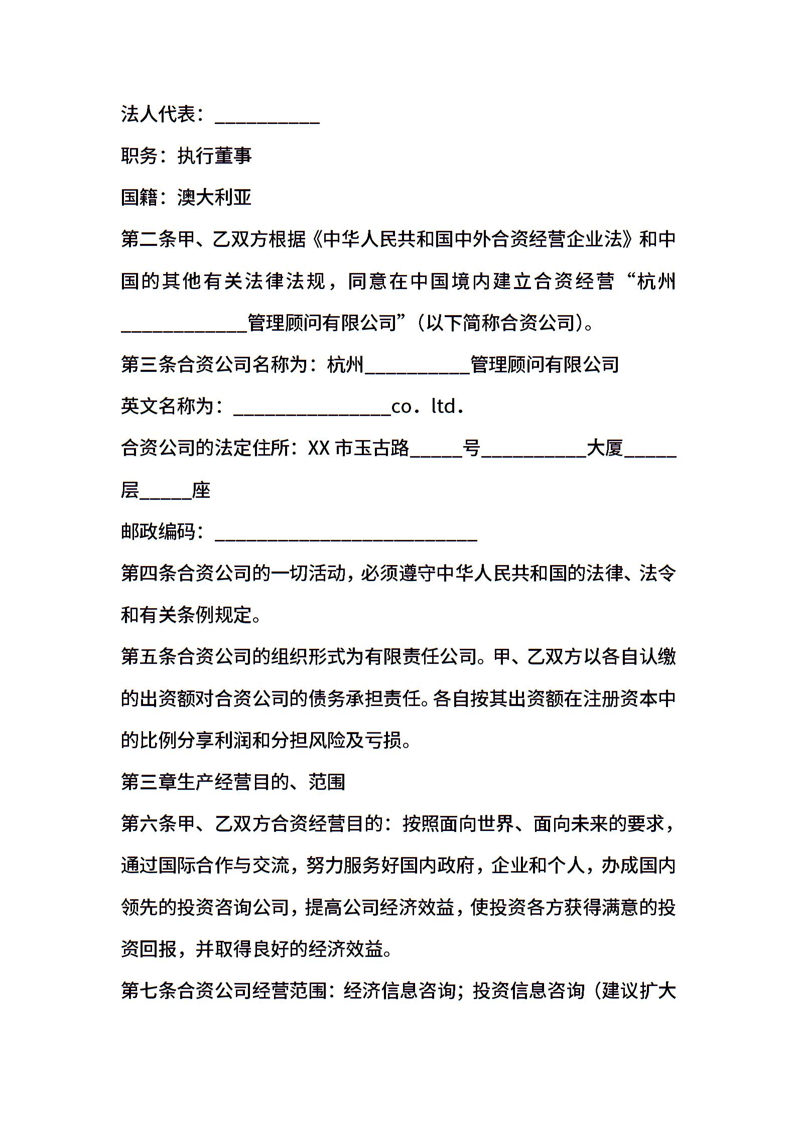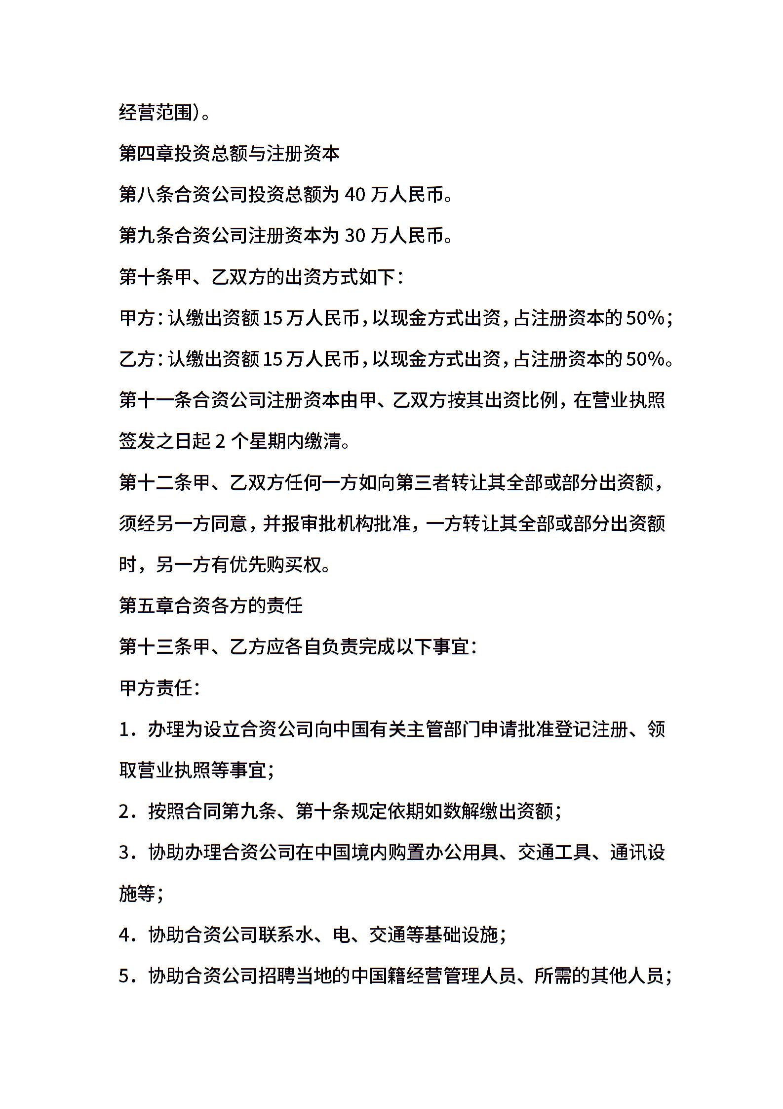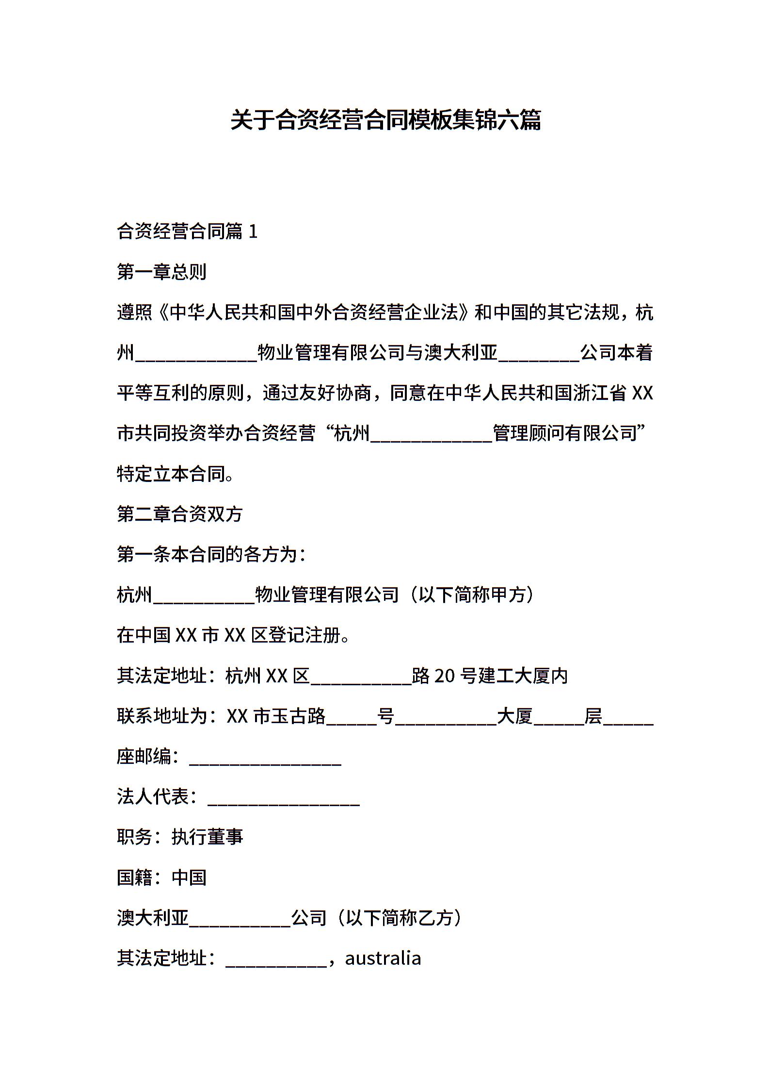 关于合资经营合同模板集锦六篇