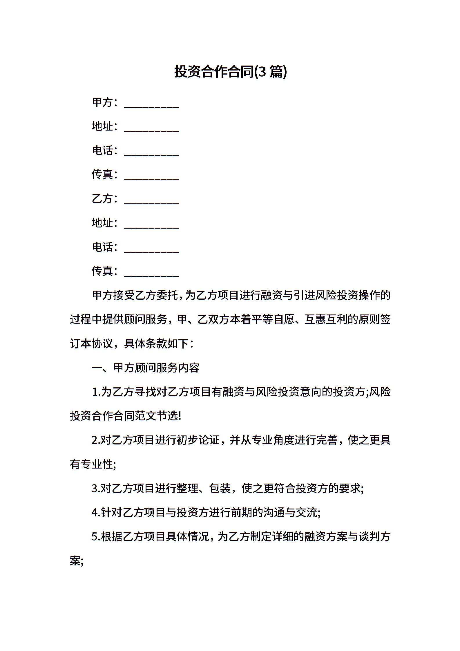 投资合作合同(3篇)