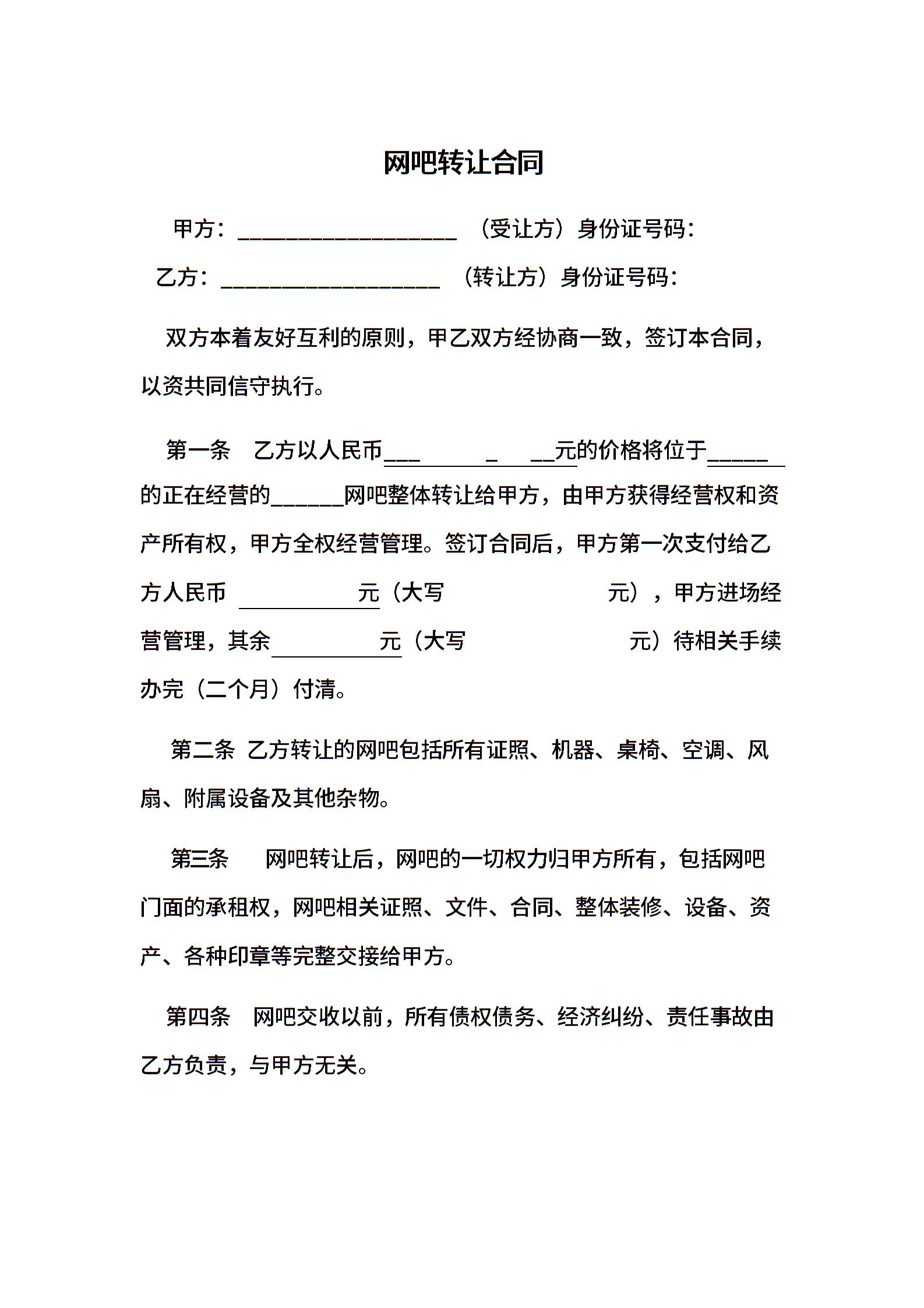 网吧转让合同.docx