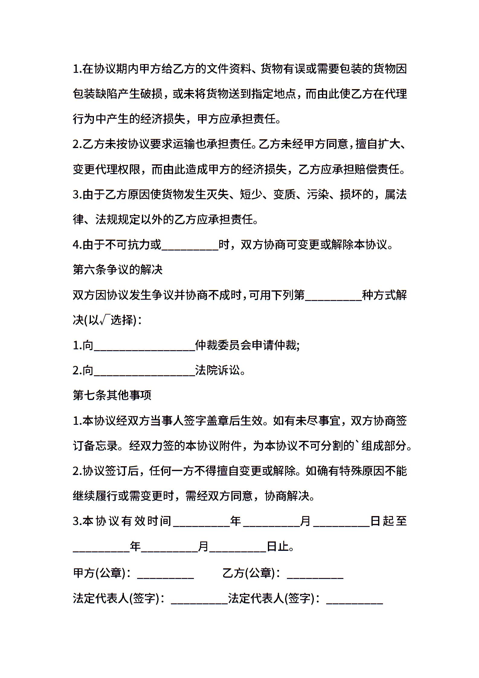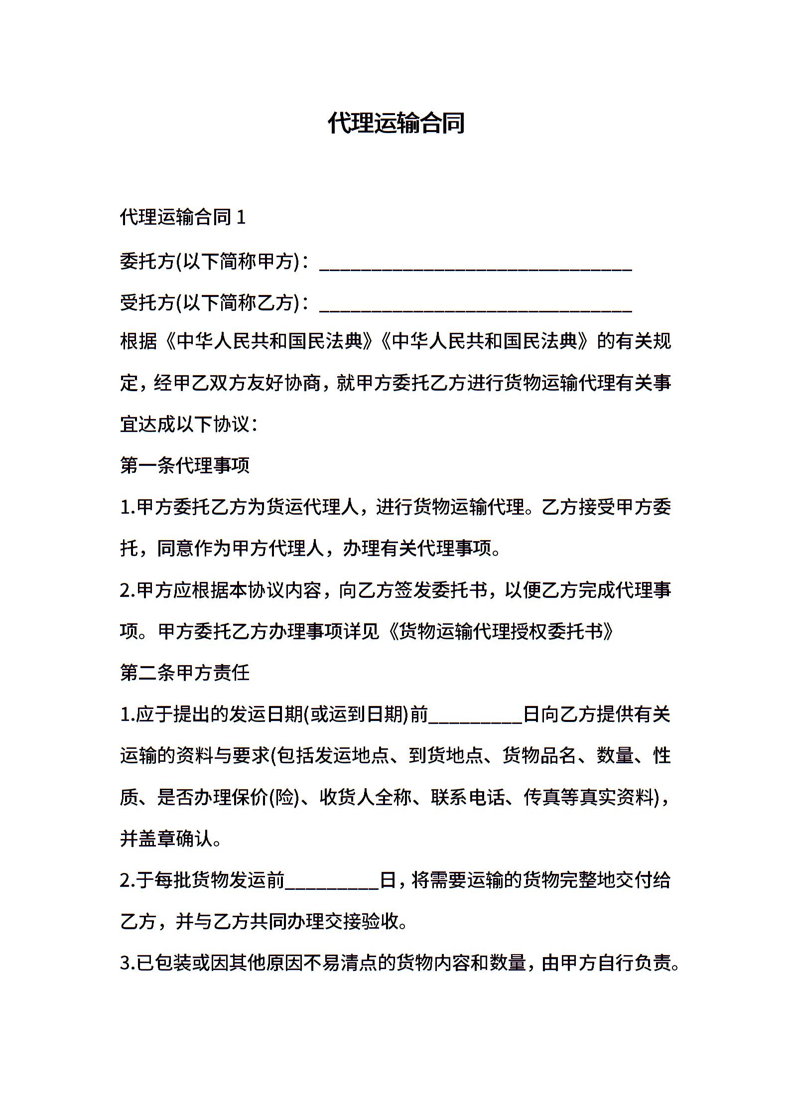 代理运输合同