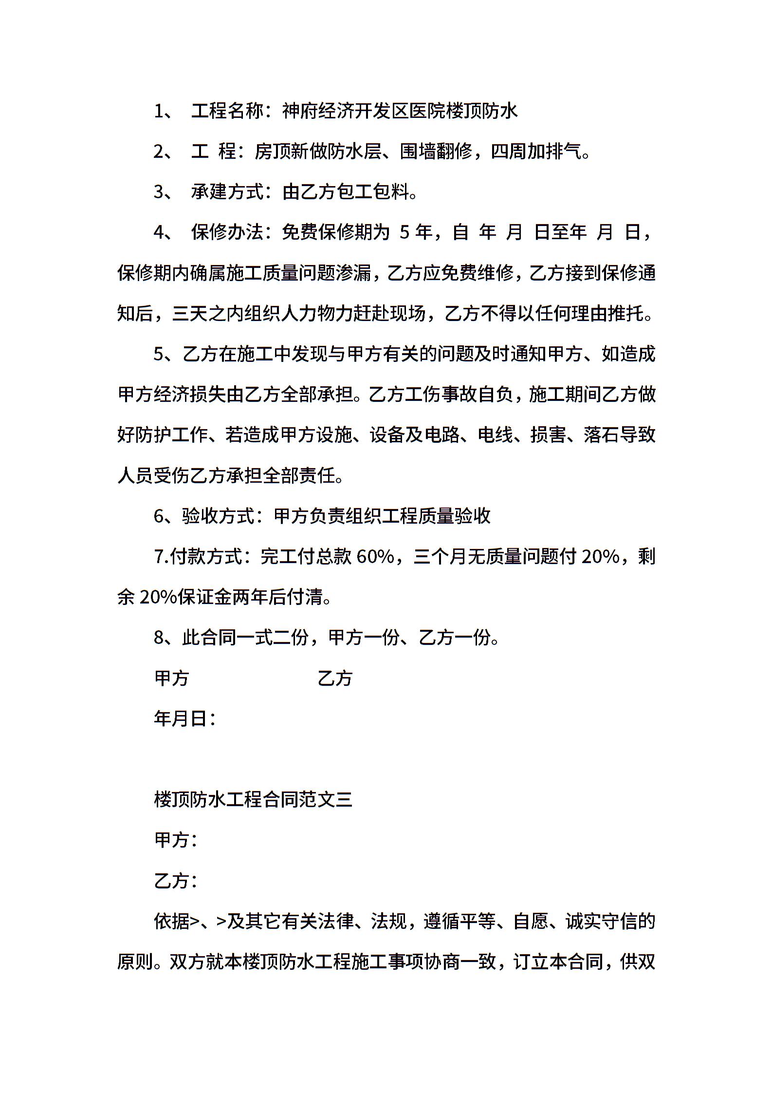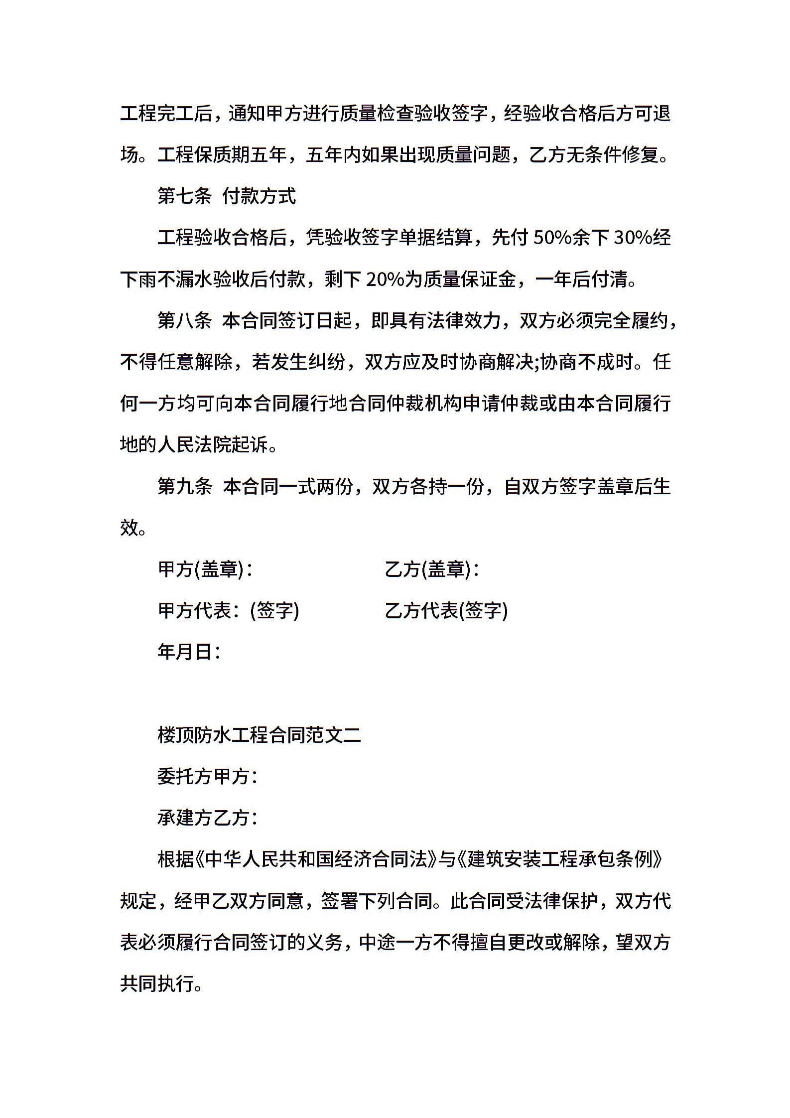 楼顶防水工程合同
