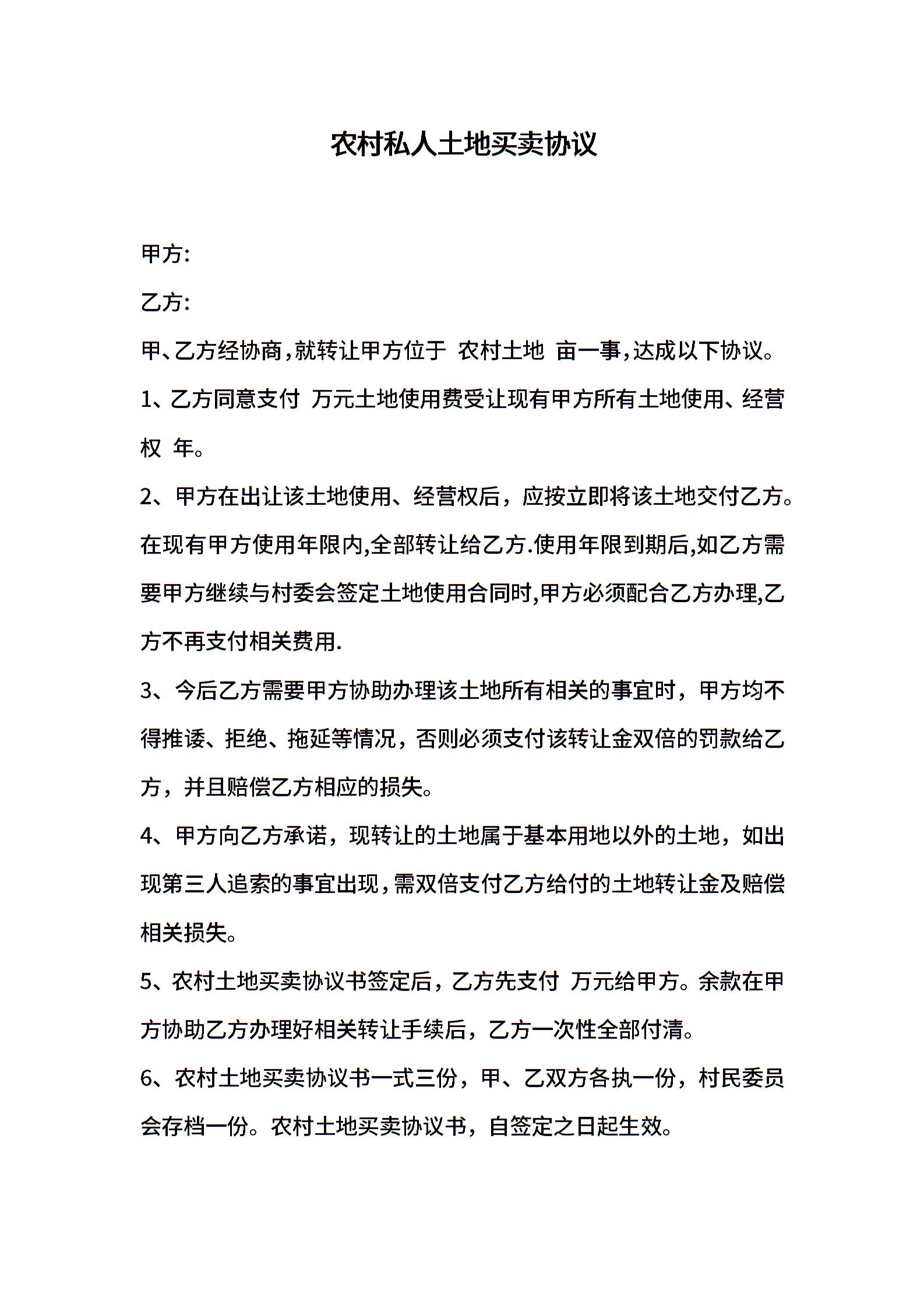 农村私人土地买卖协议