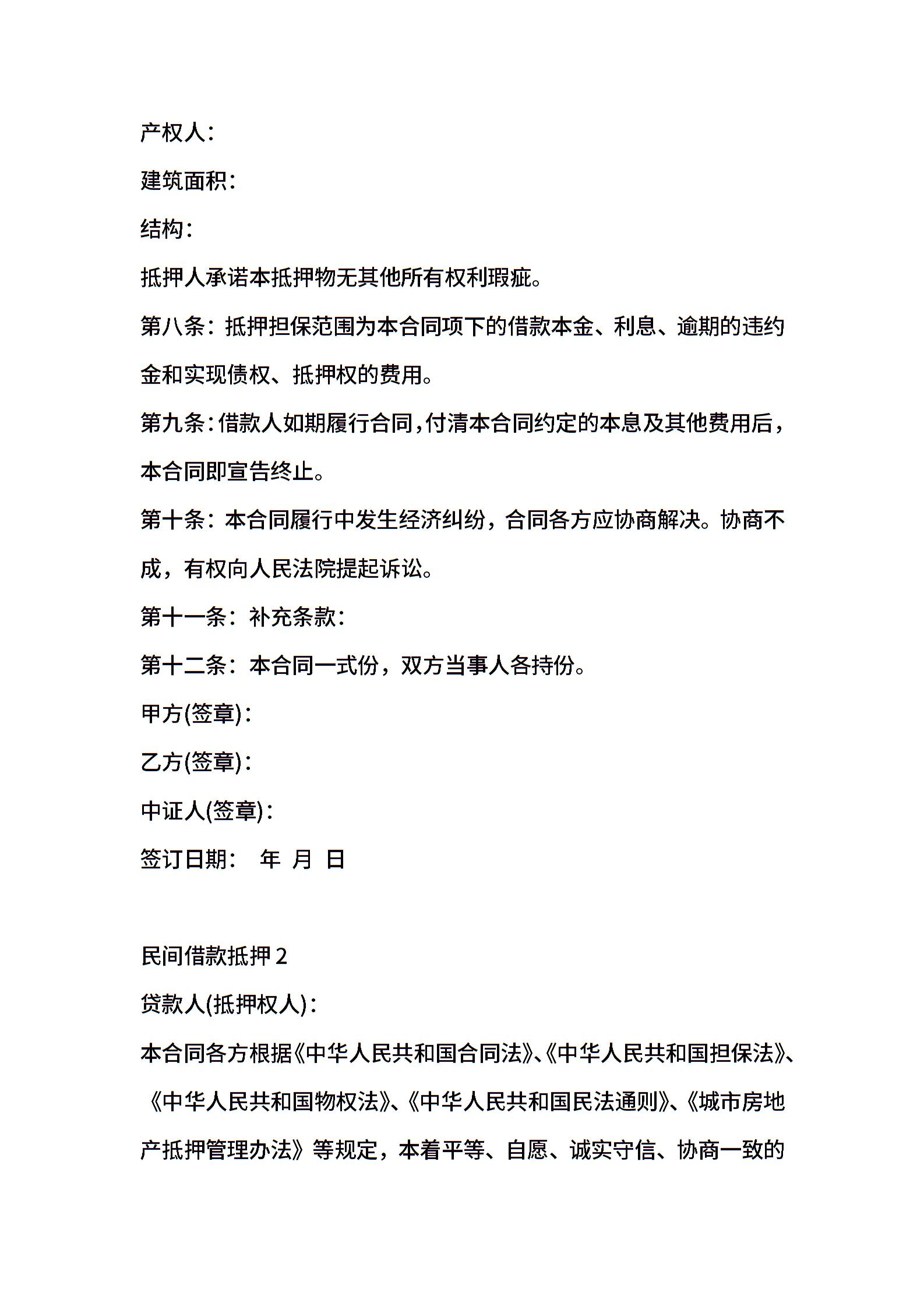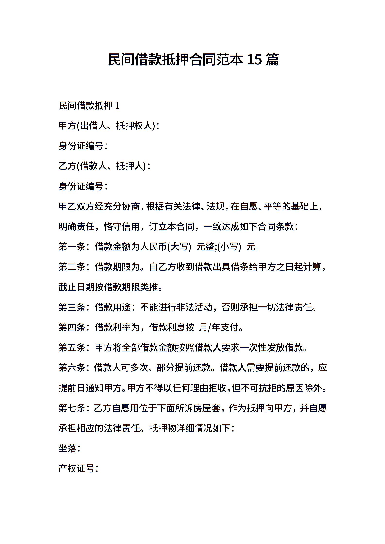 民间借款抵押合同范本15篇