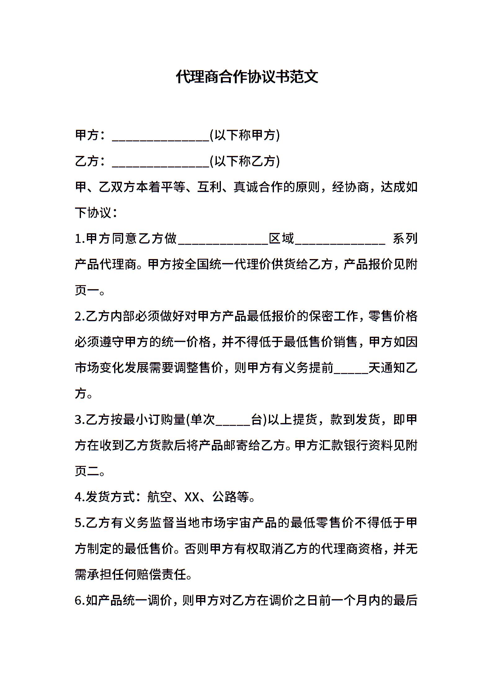 代理商合作协议书范文