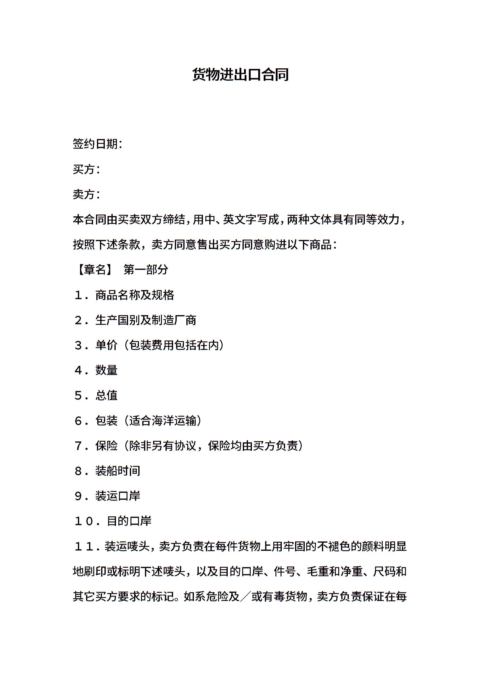 货物进口合同(中英文)