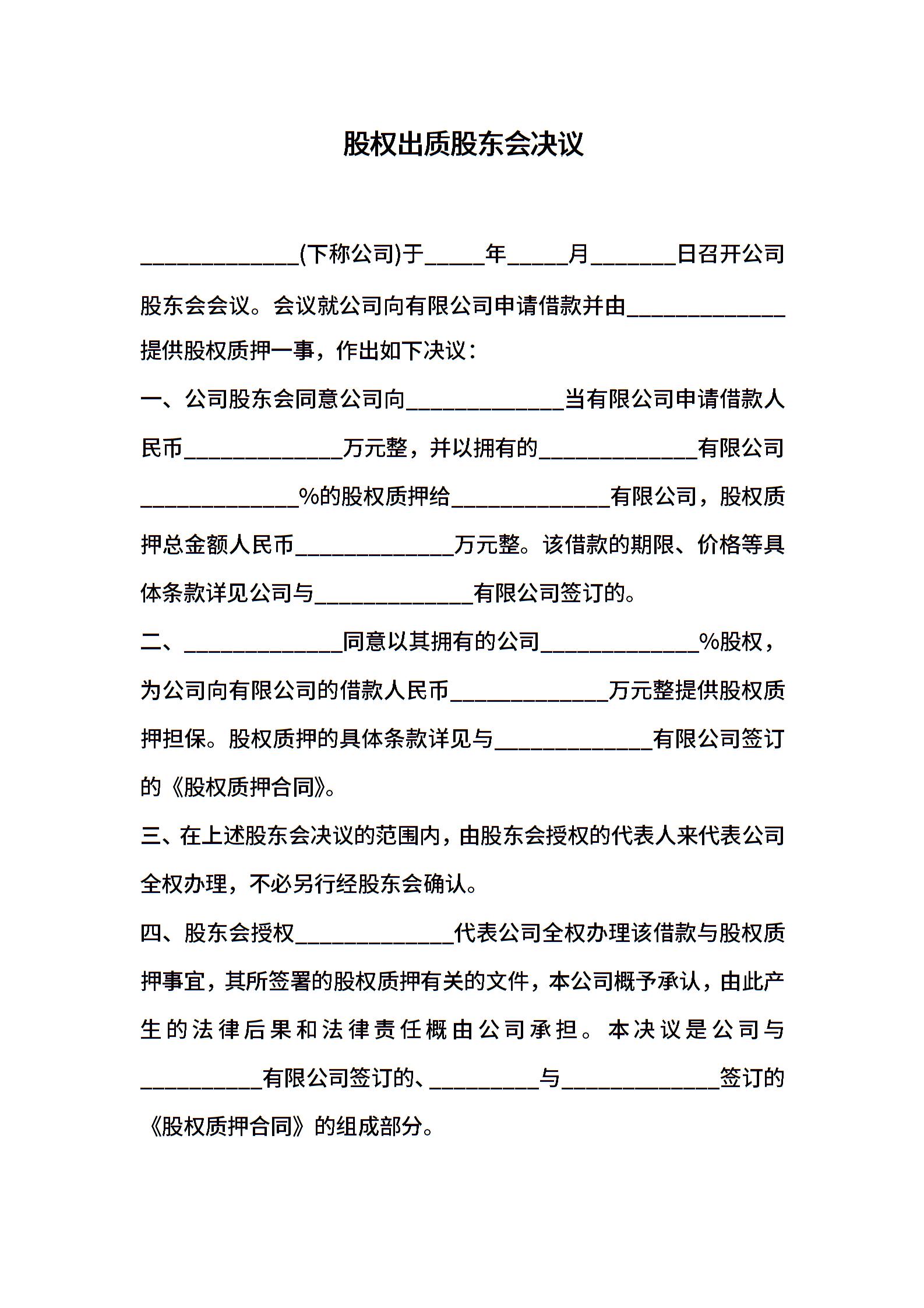 当前位置:量子办公 > 合同模板 > 股东会决议 >