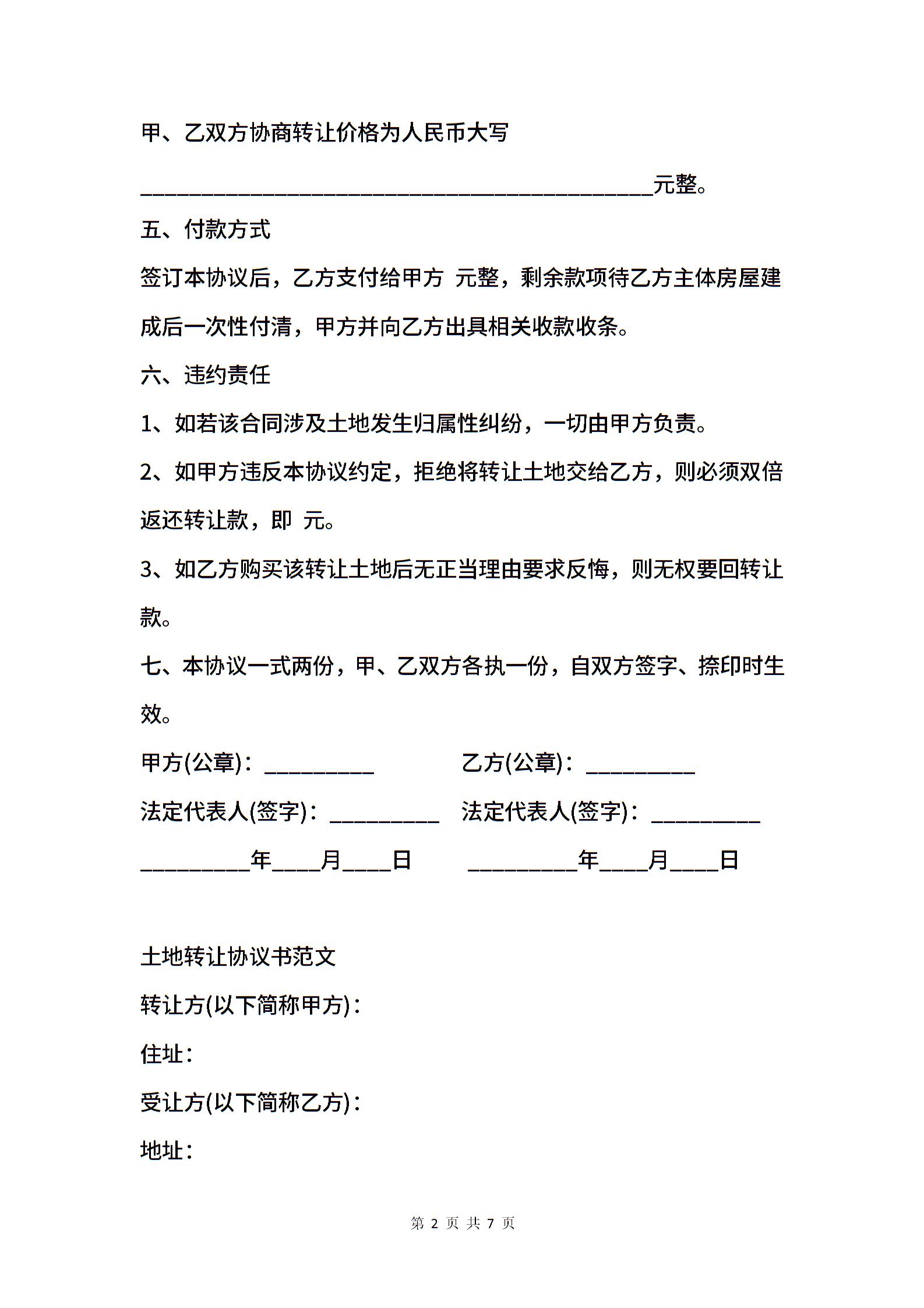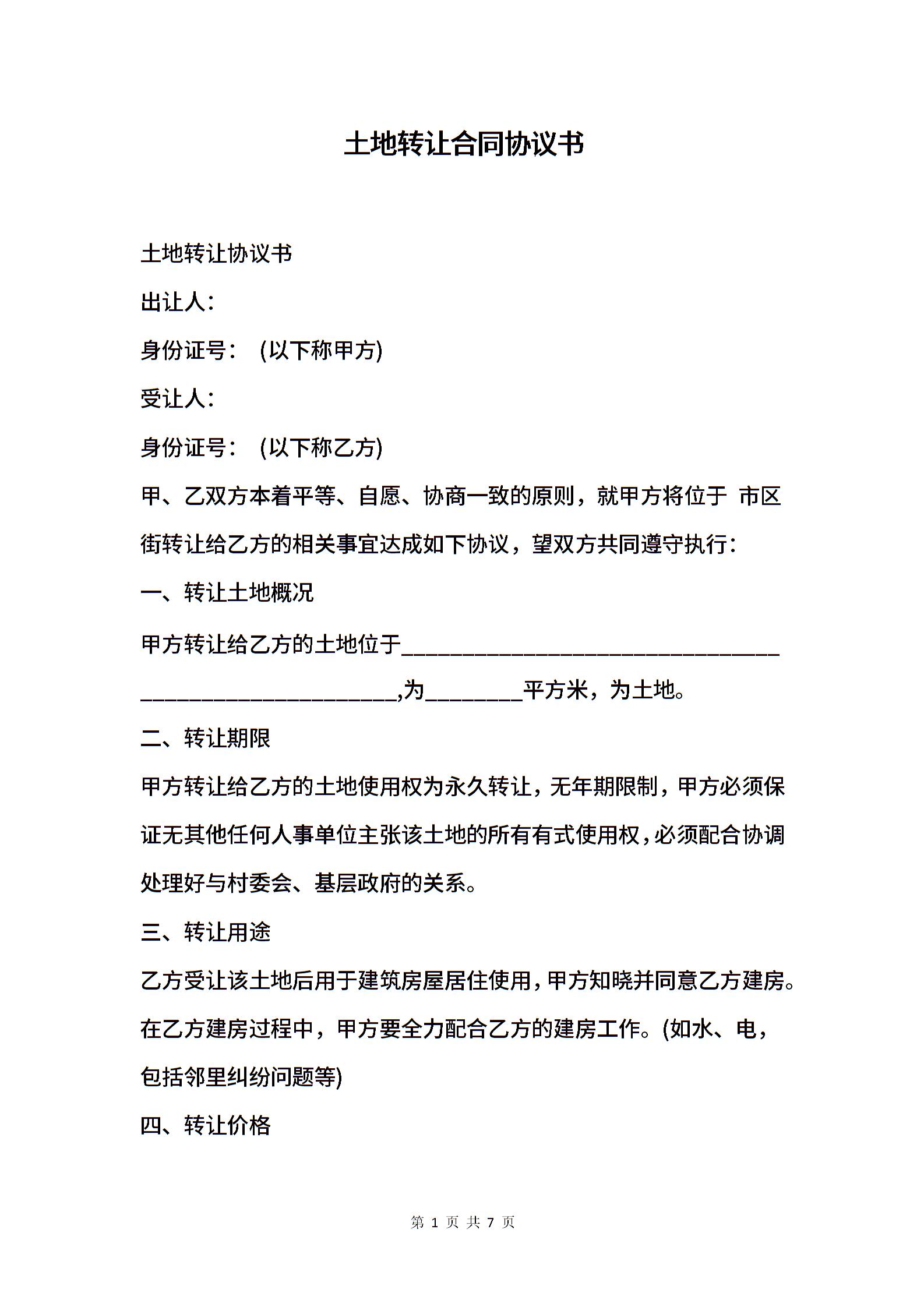 土地转让合同协议书