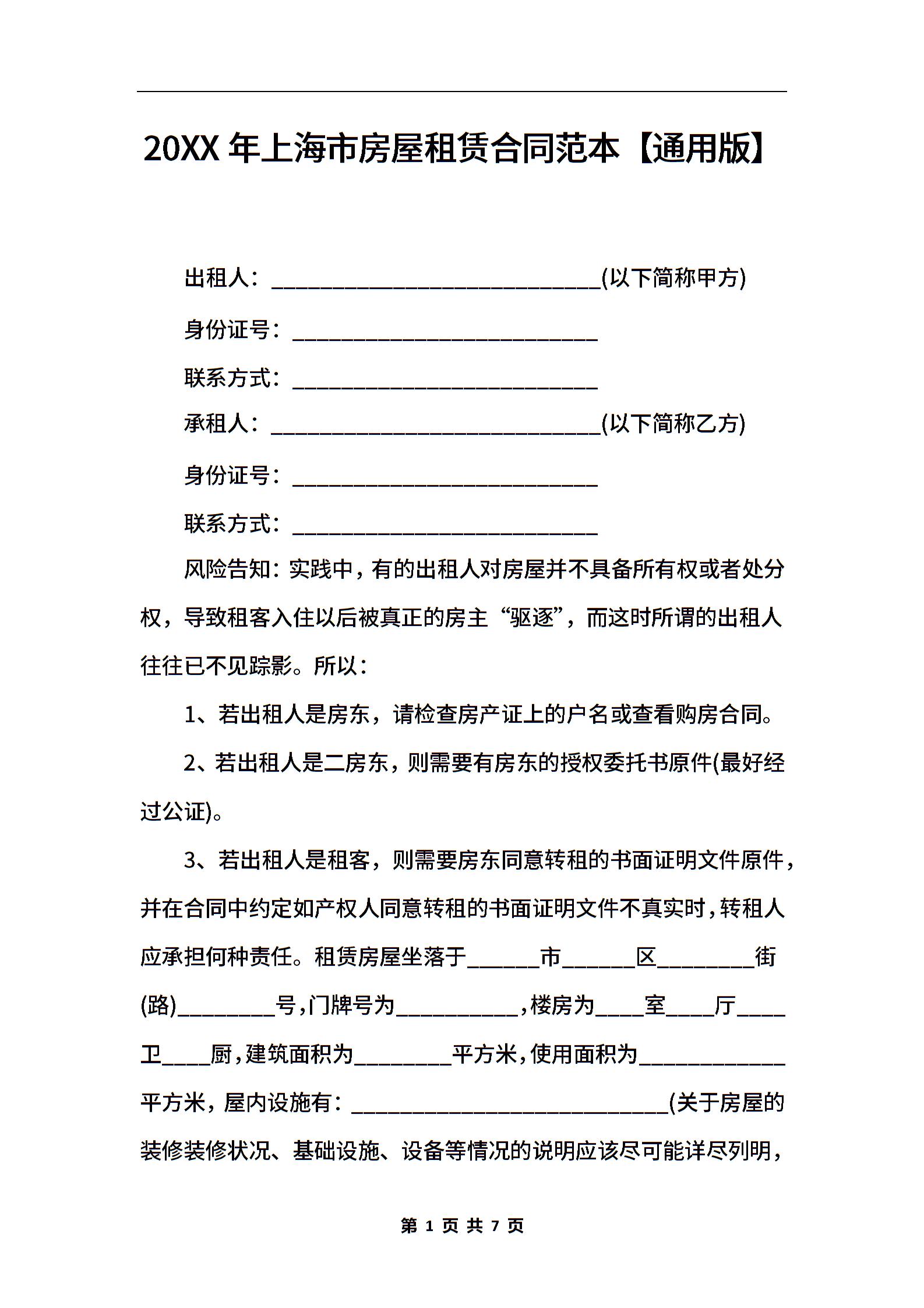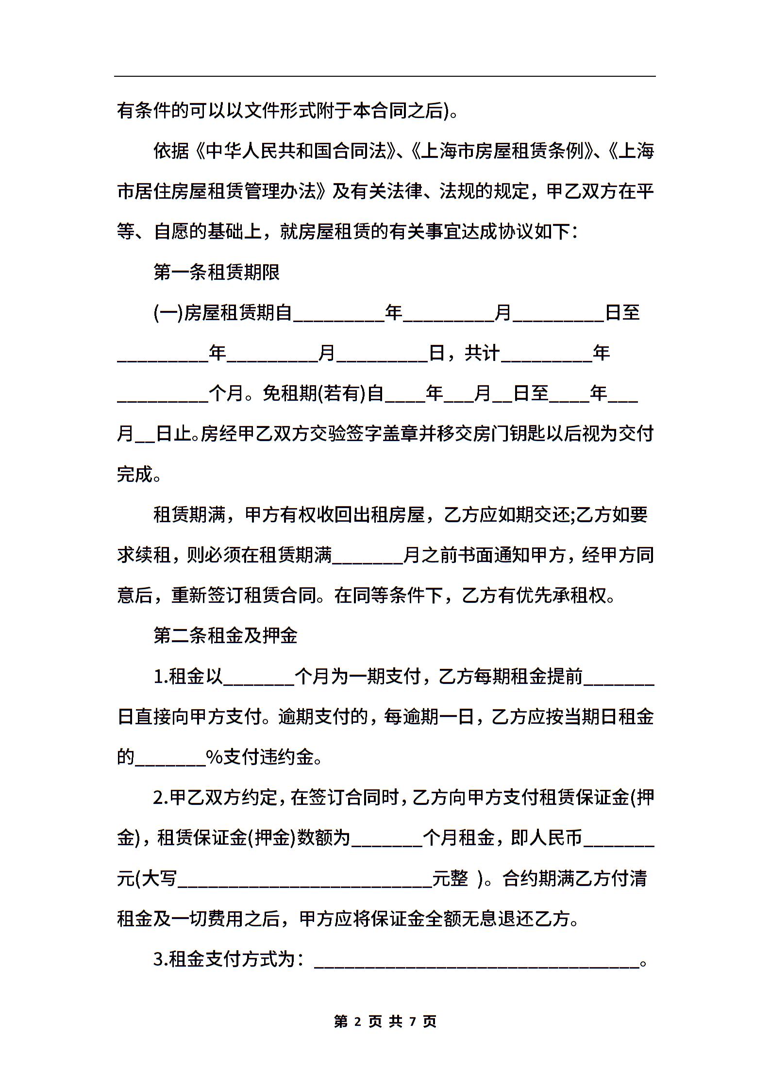 2021年上海市房屋租赁合同范本【通用版】