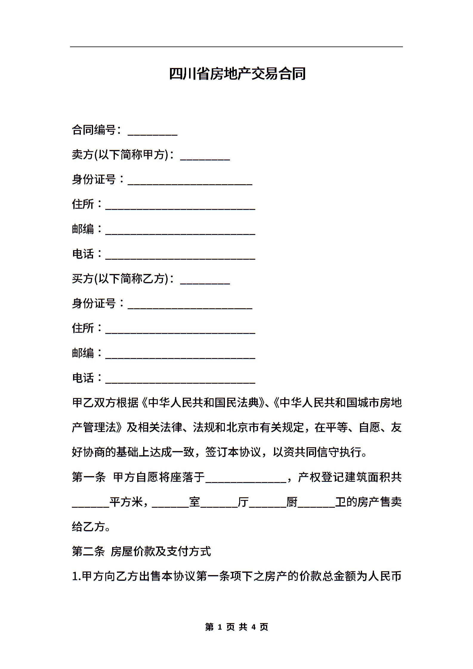 四川省房地产交易合同