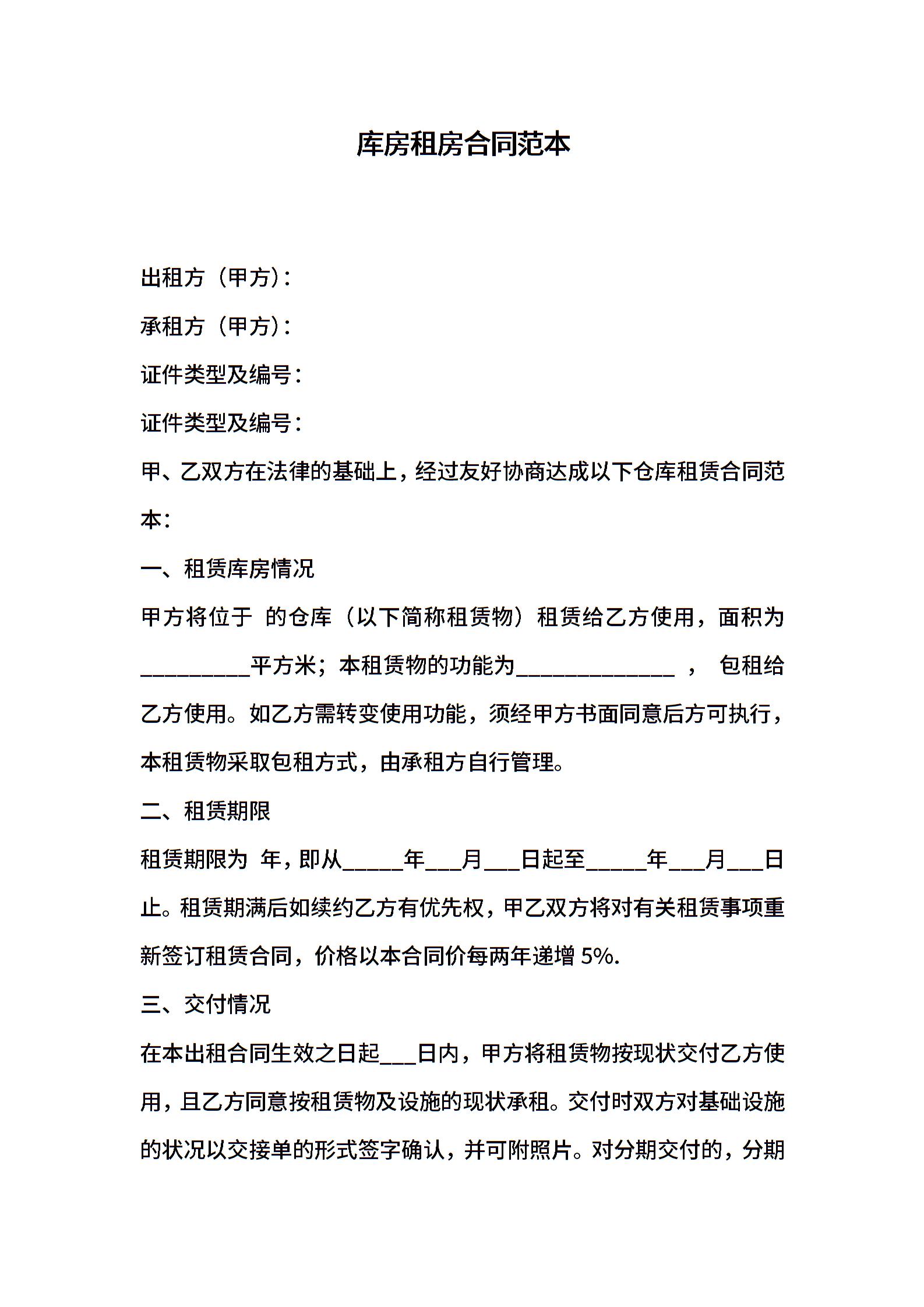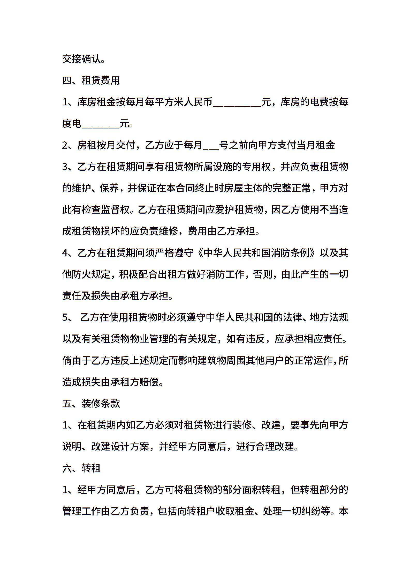库房租房合同范本 (2)