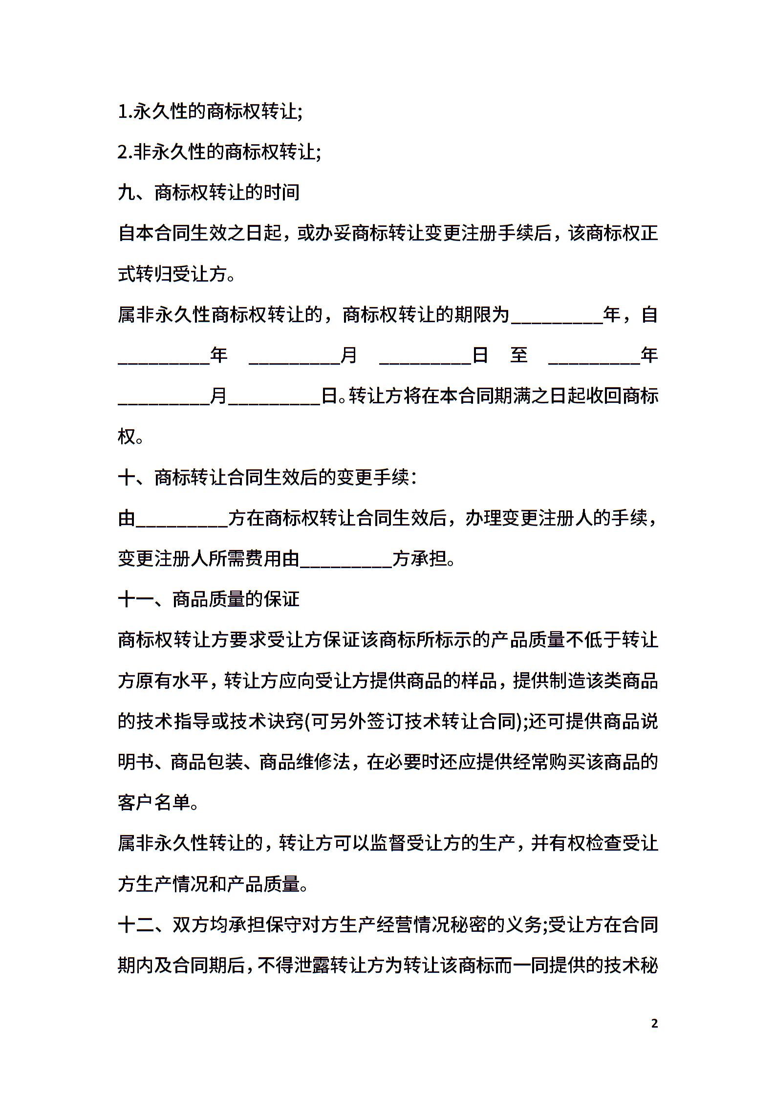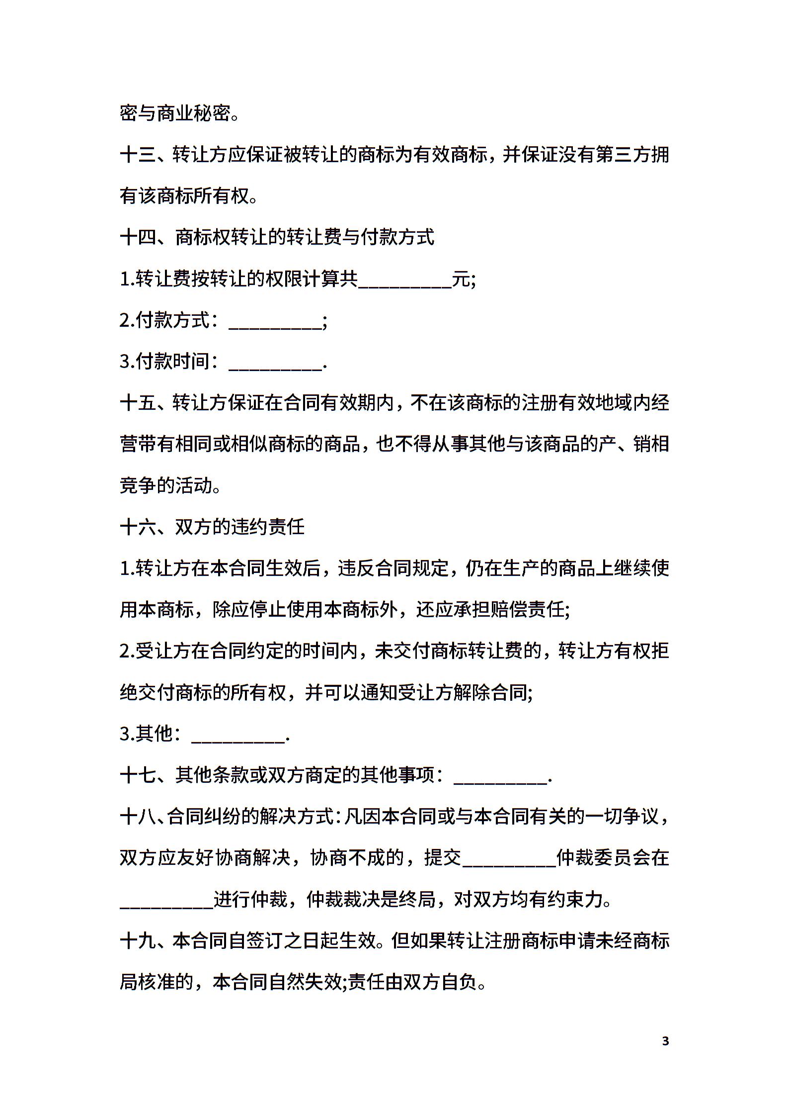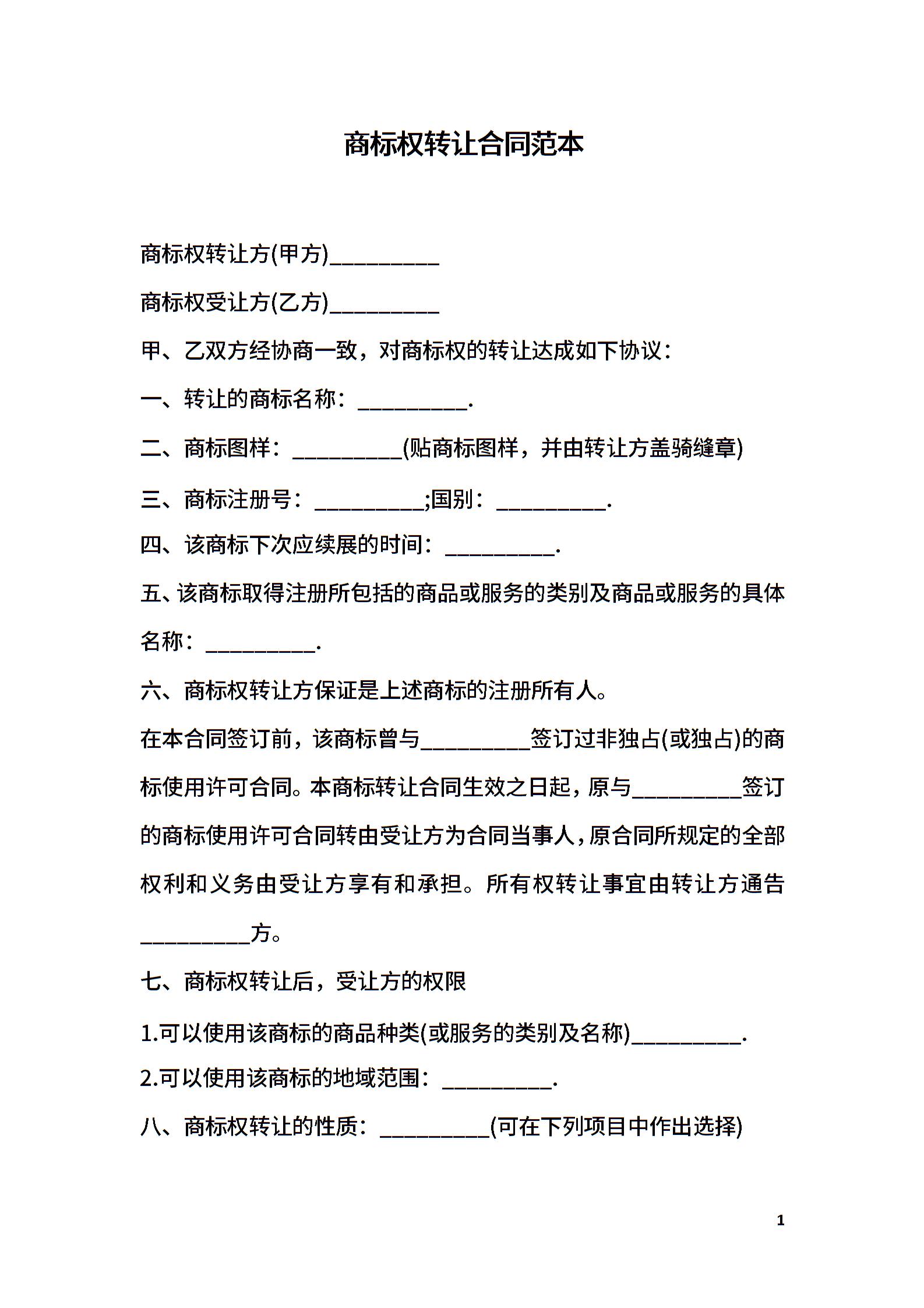 商标权转让合同范本