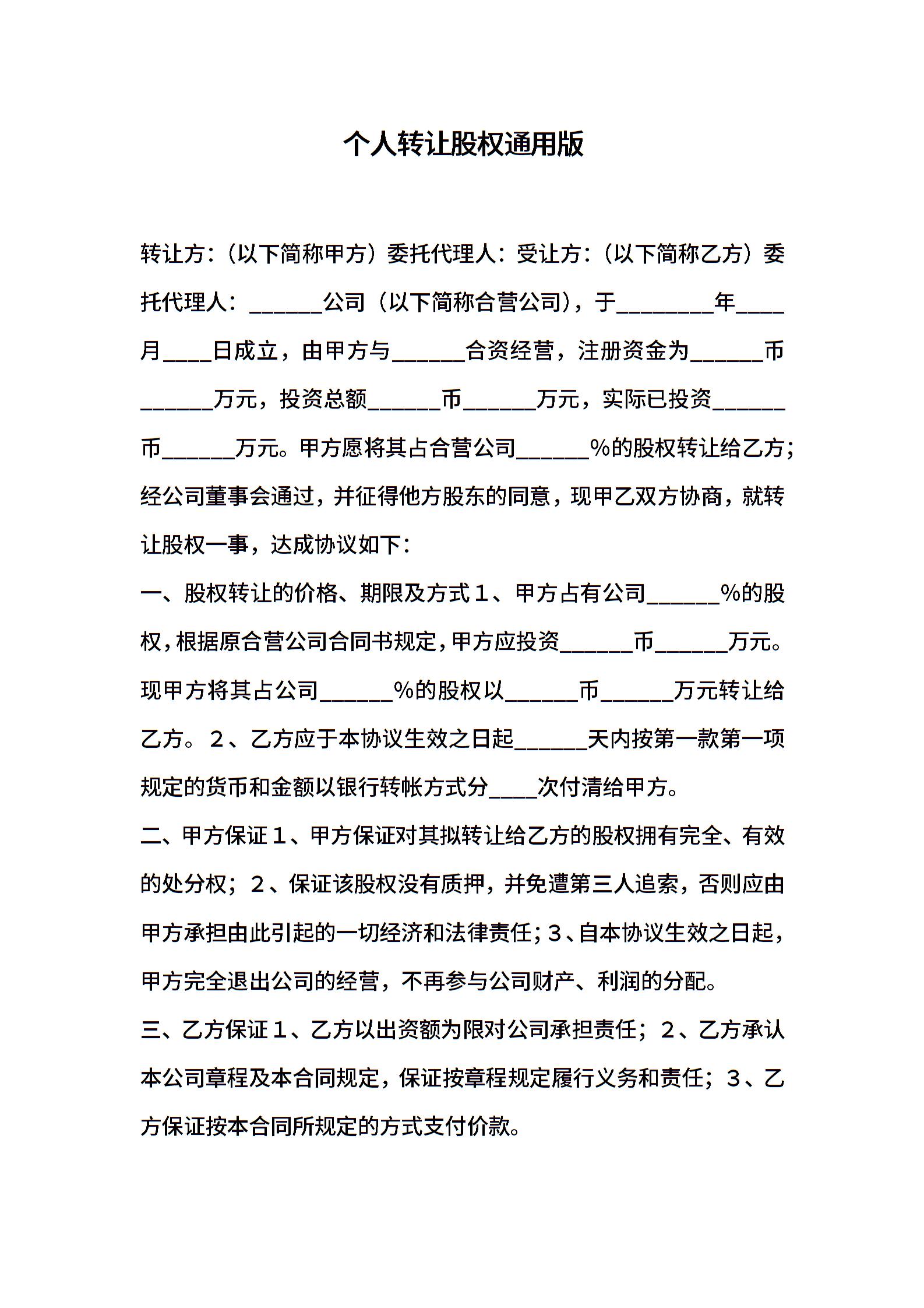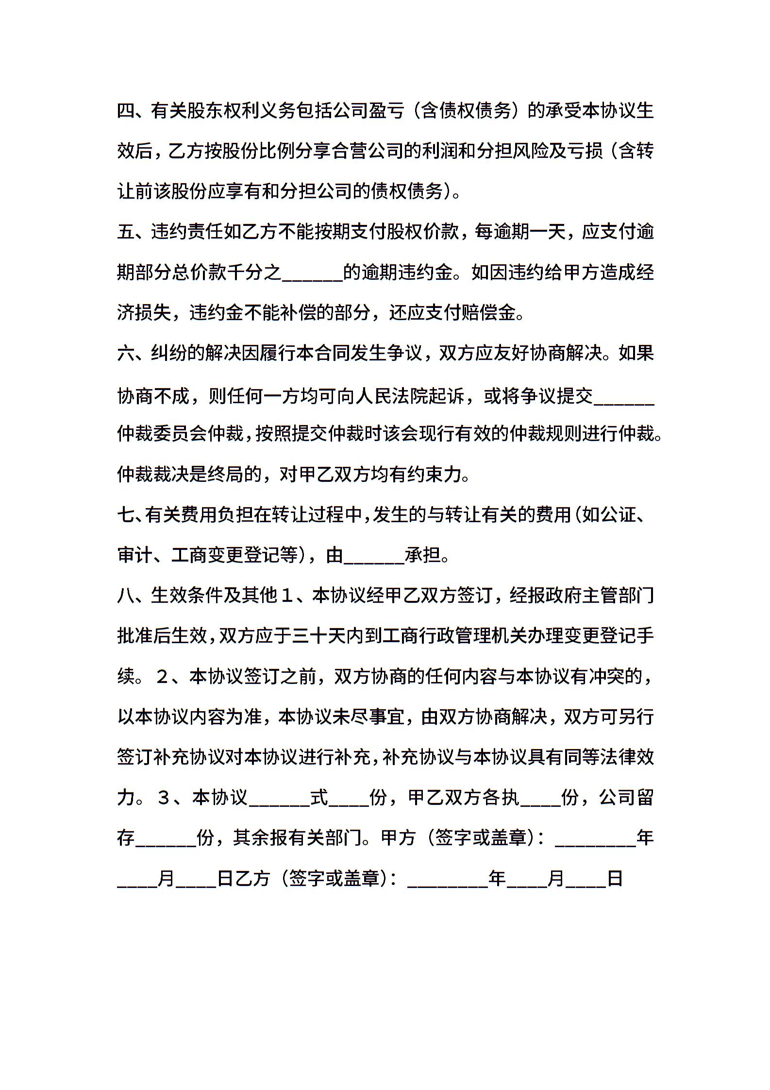 当前位置:量子办公 > 合同模板 > 股权转让协议 >