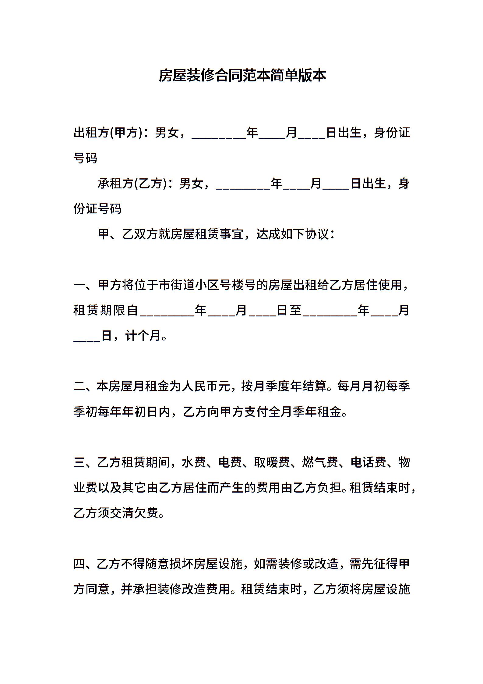 当前位置:量子办公 > 合同模板 > 房屋装修 >