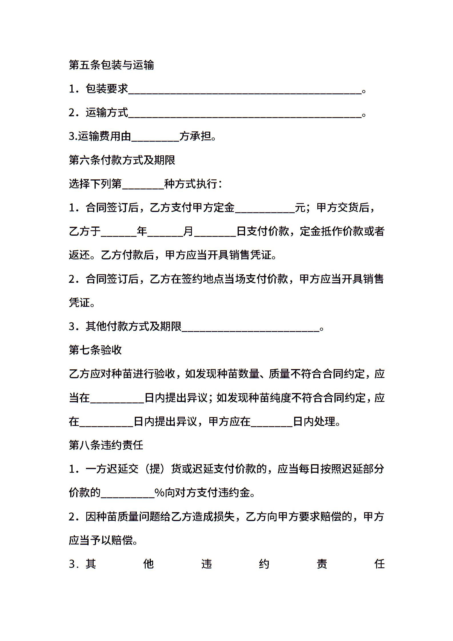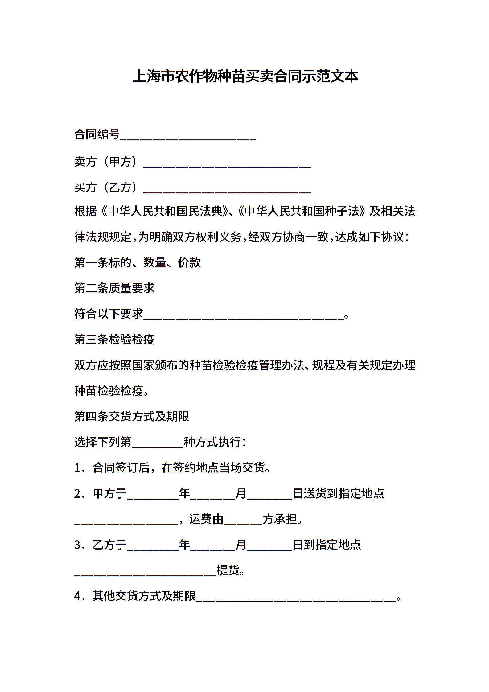 上海市农作物种苗买卖合同示范文本