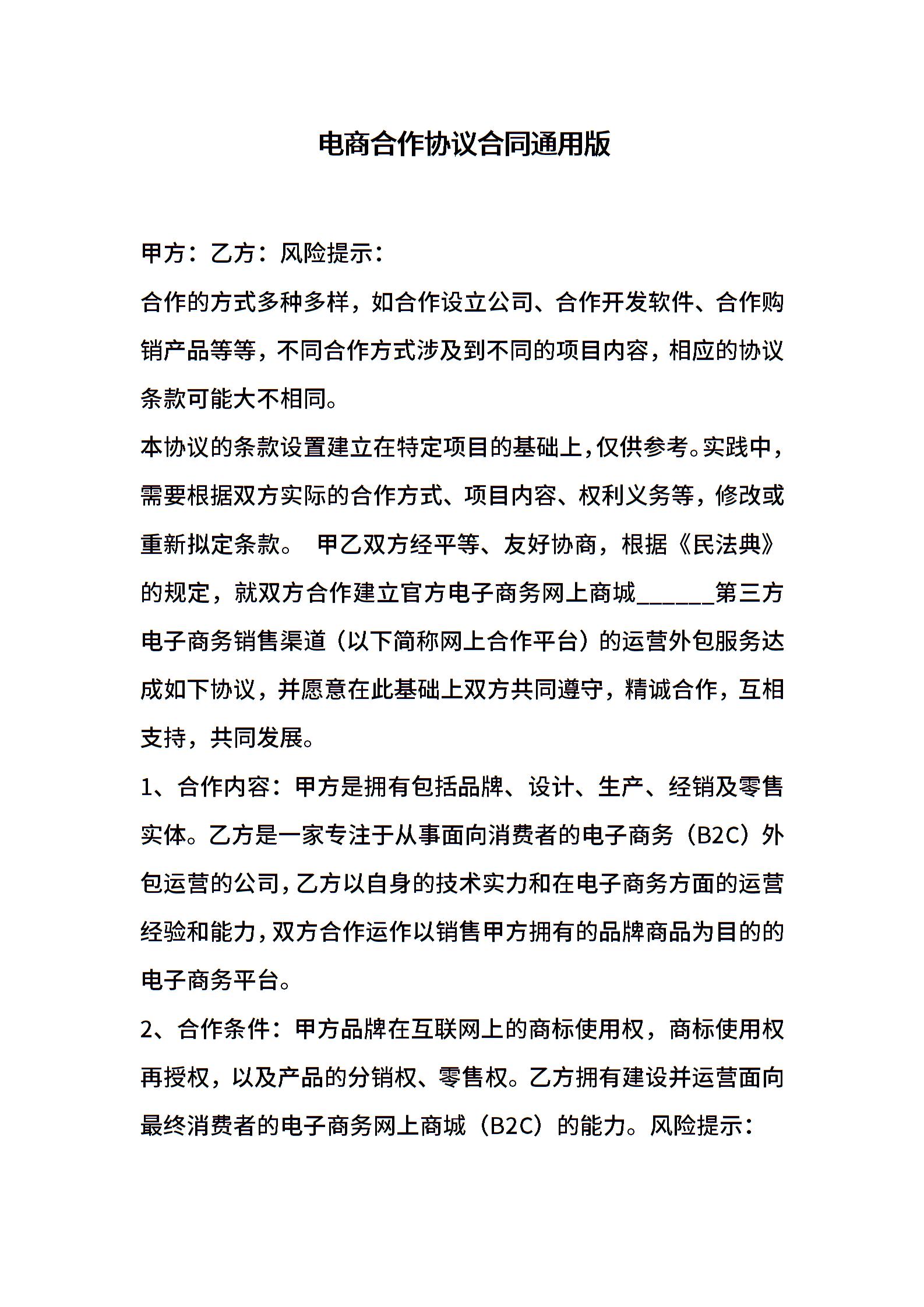 电商合作协议合同通用版