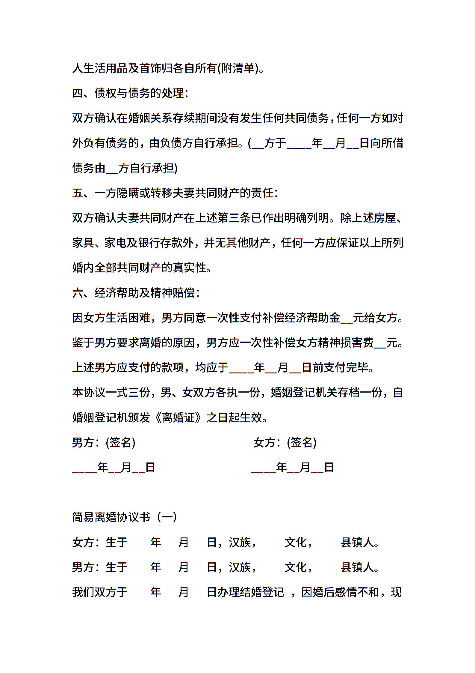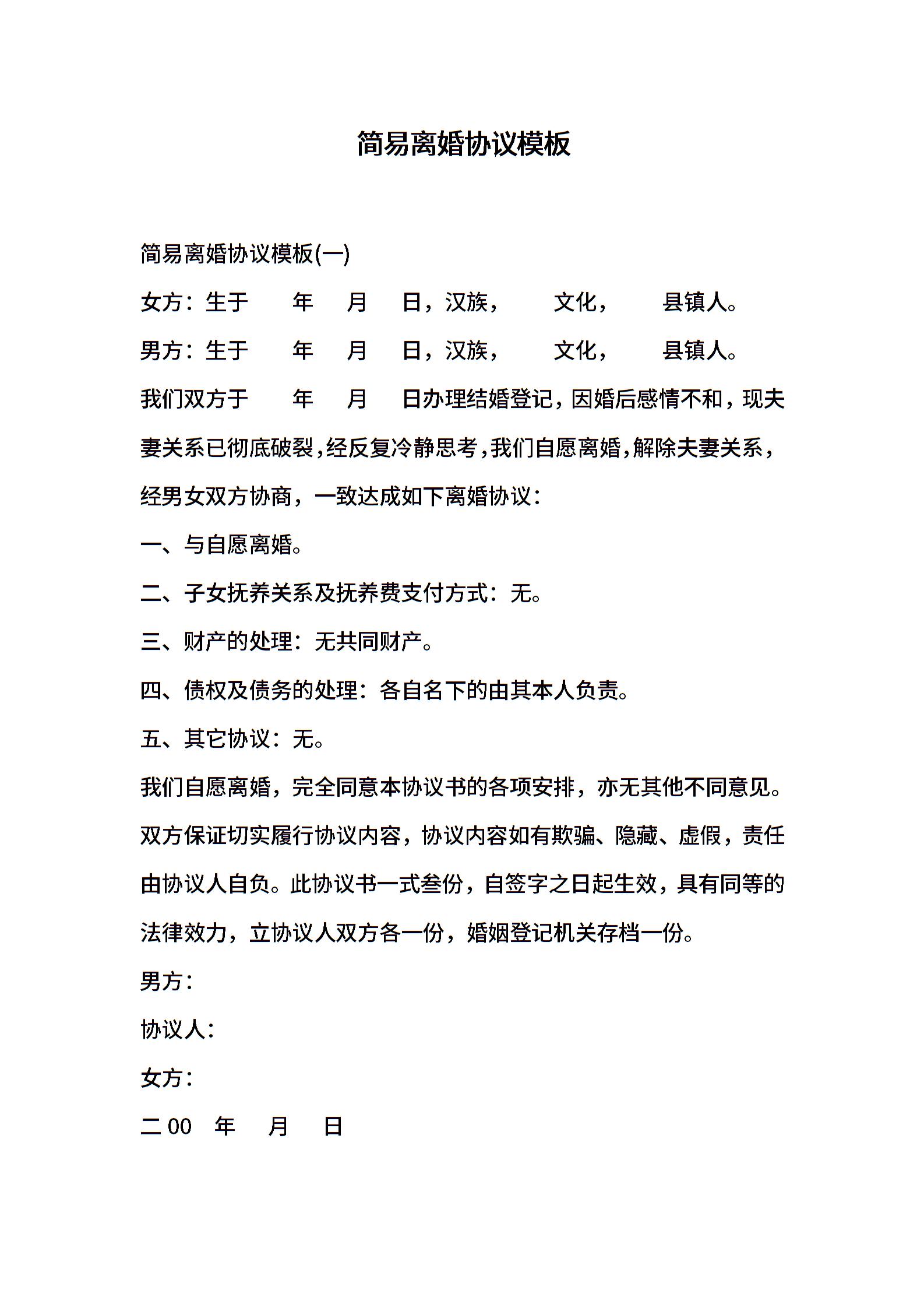 简易离婚协议模板