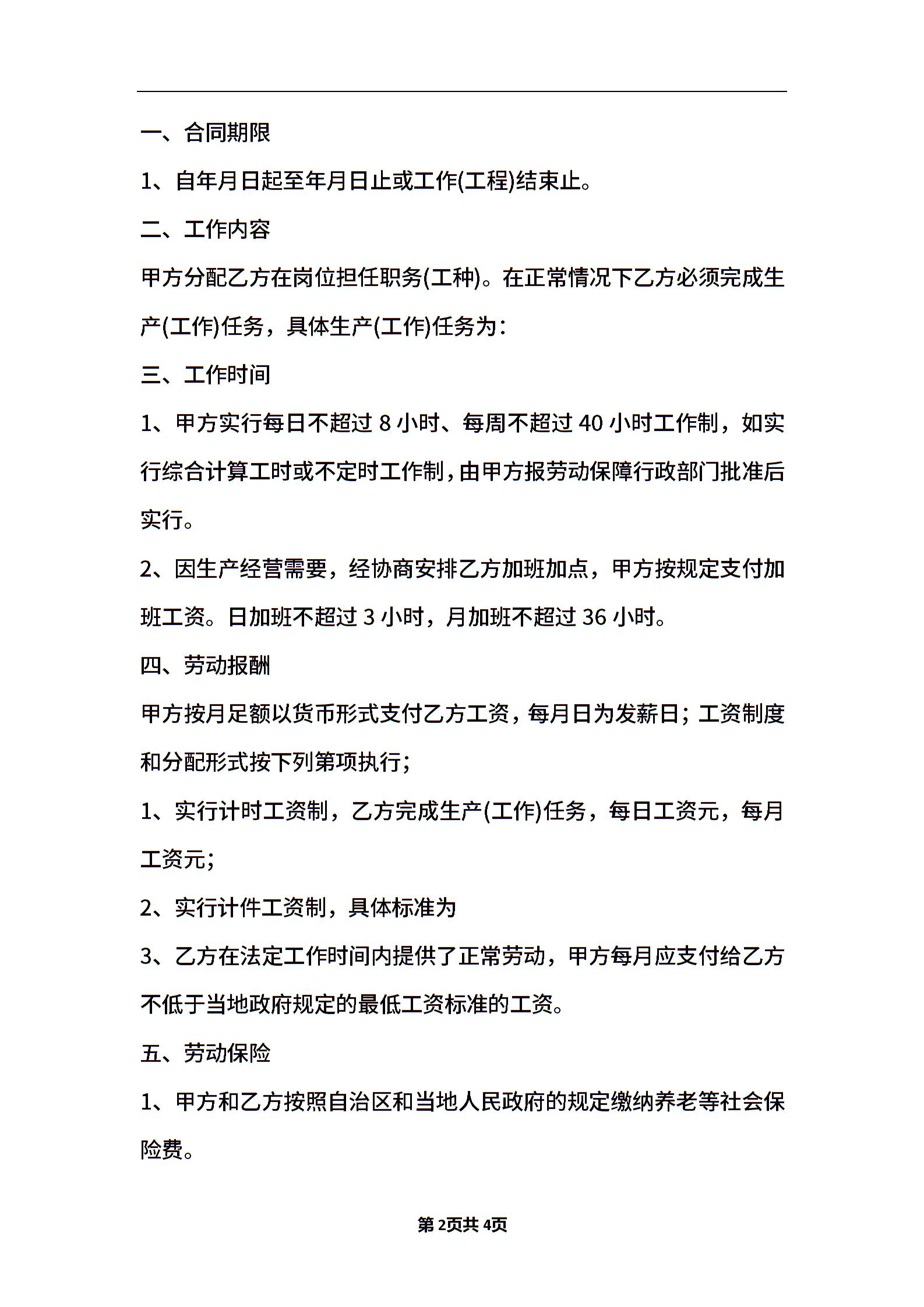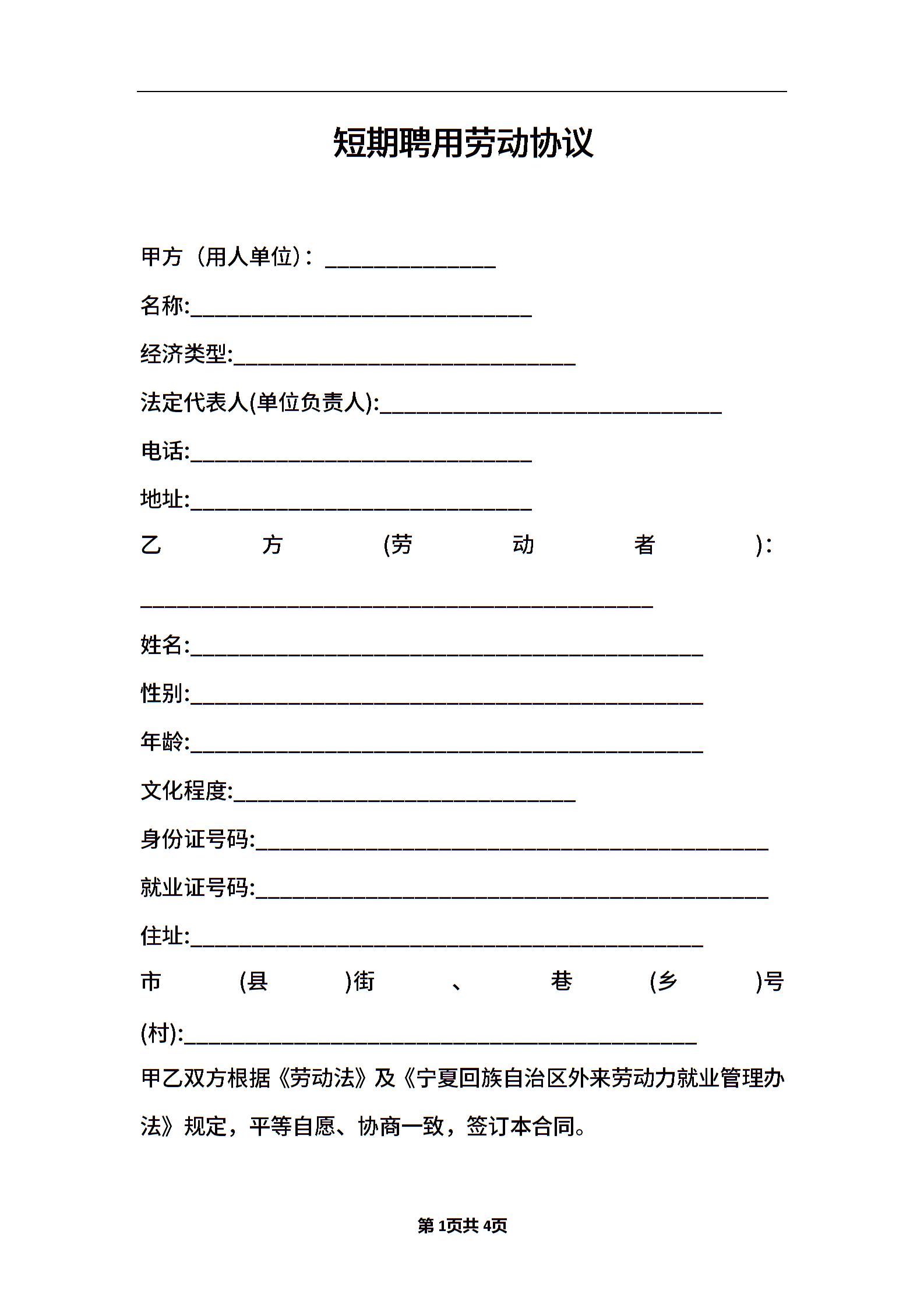 短期聘用劳动协议