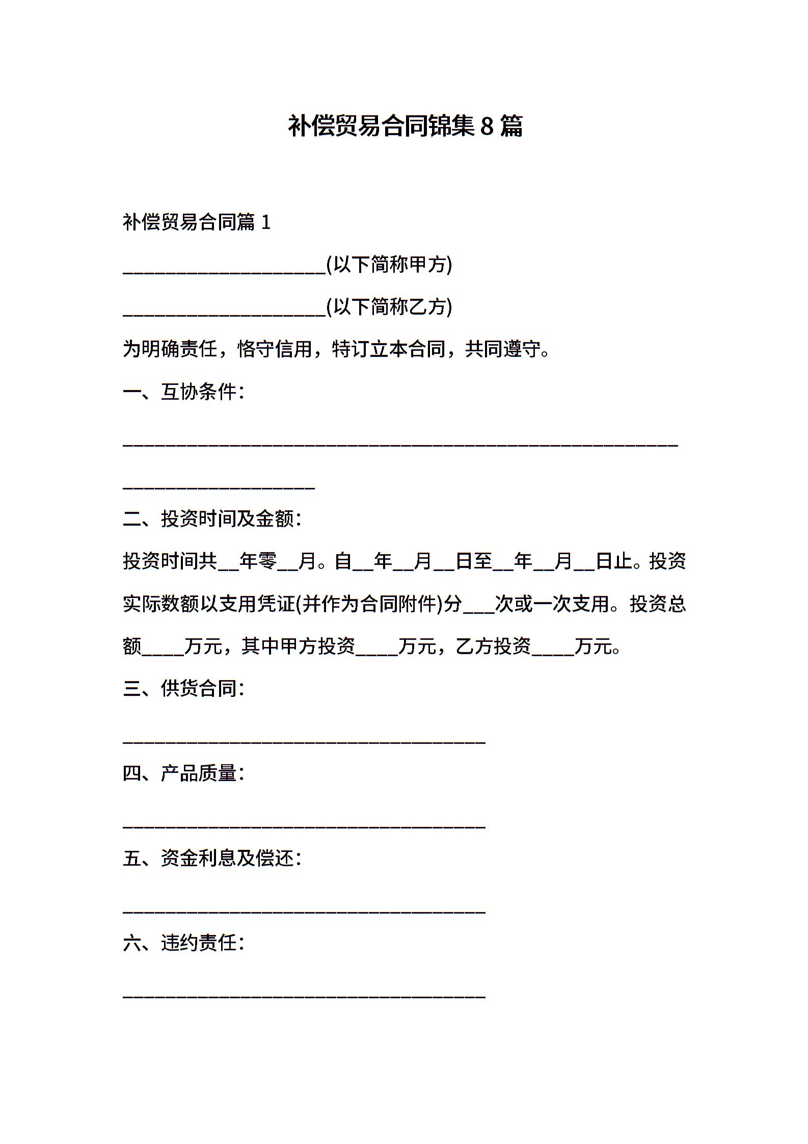 补偿贸易合同锦集8篇