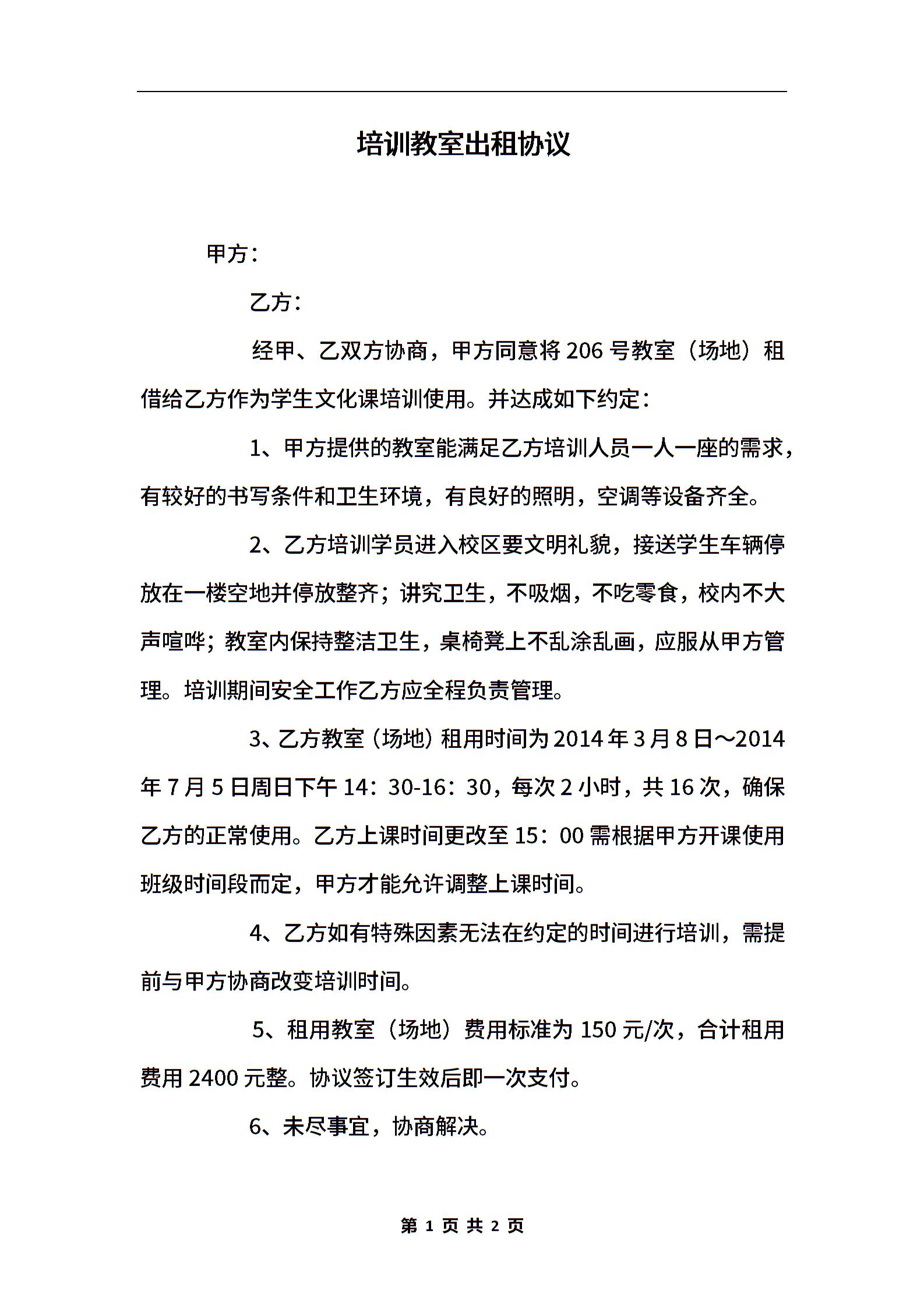 培训教室出租协议