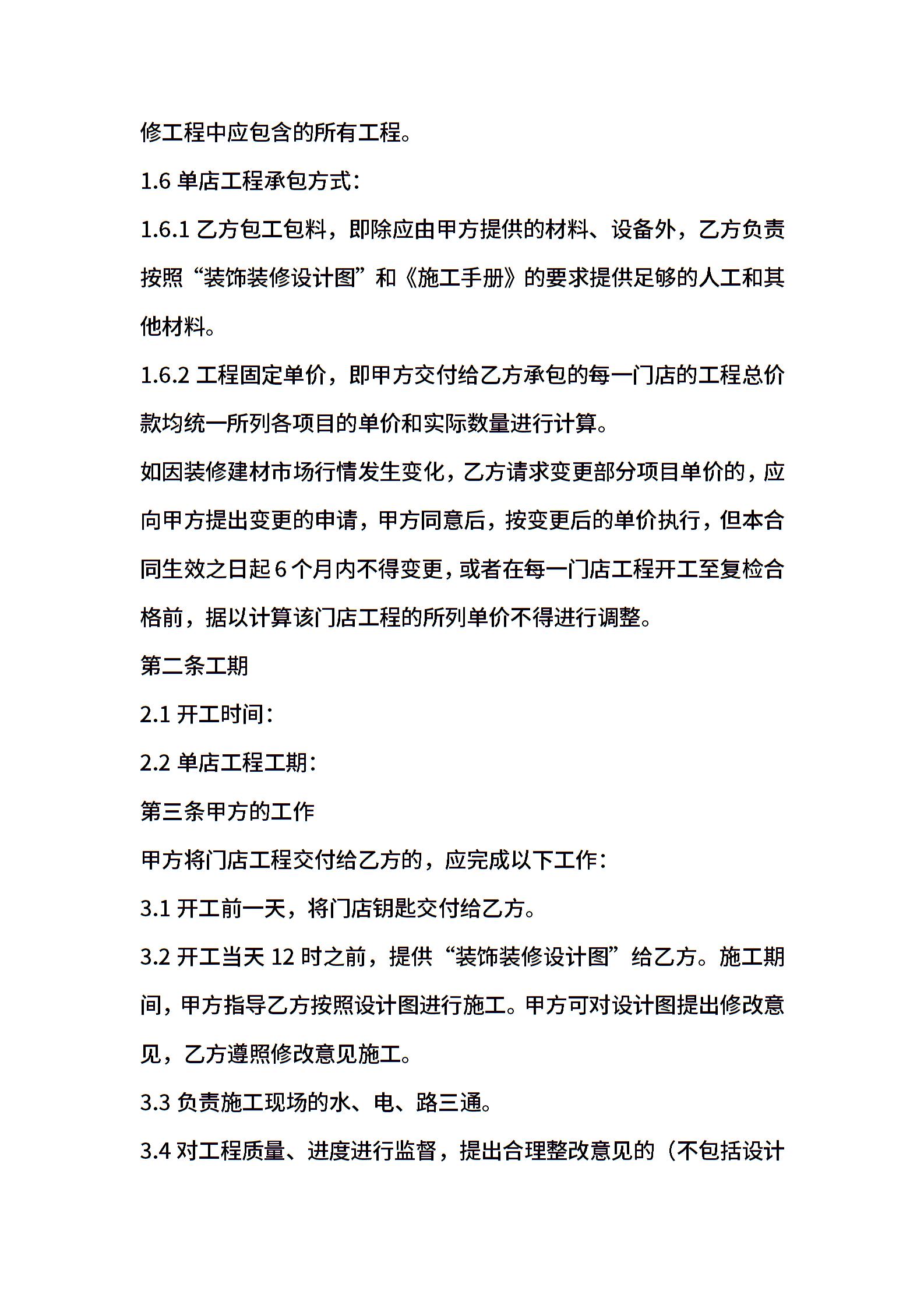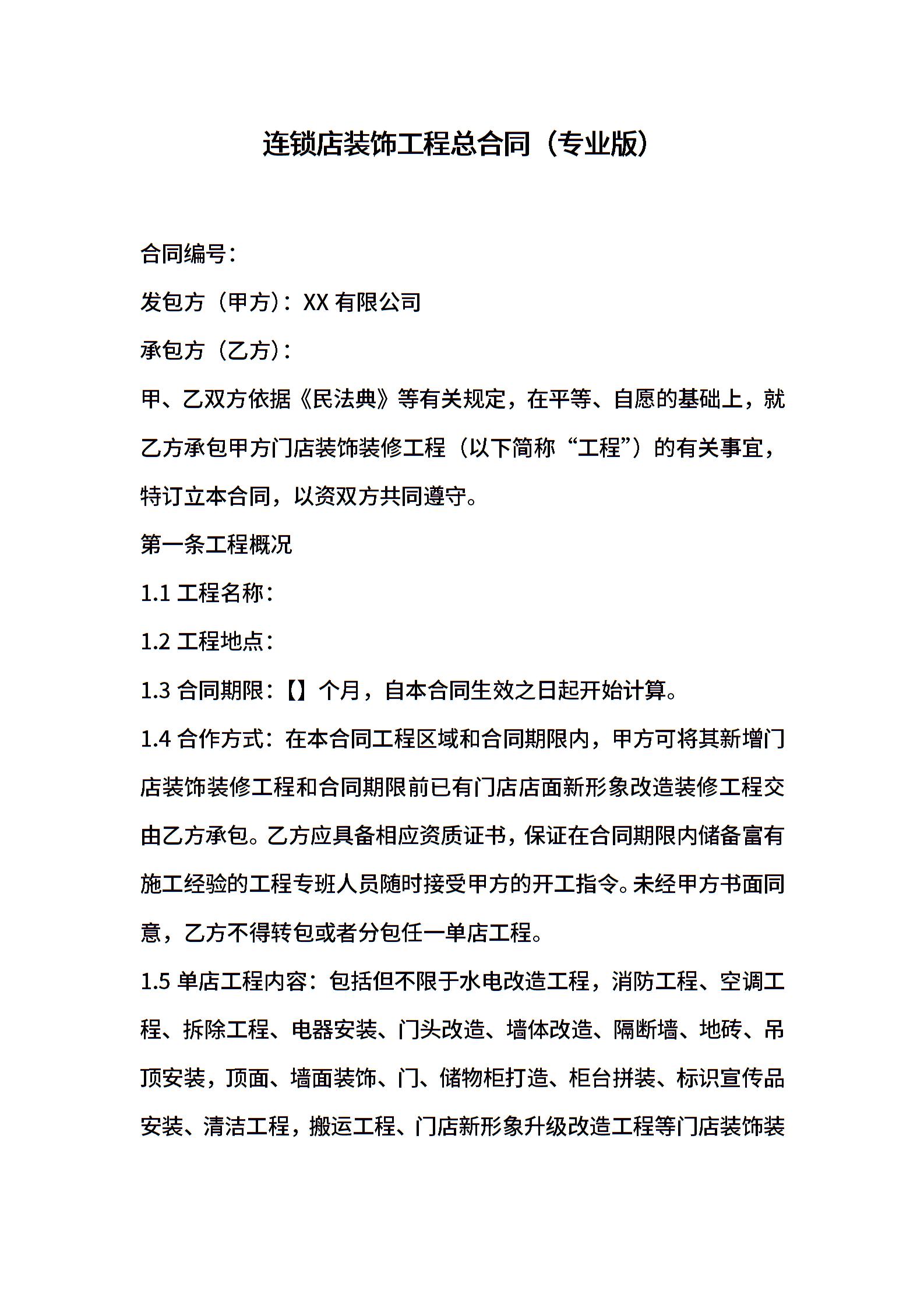 连锁店装饰工程总合同(专业版)