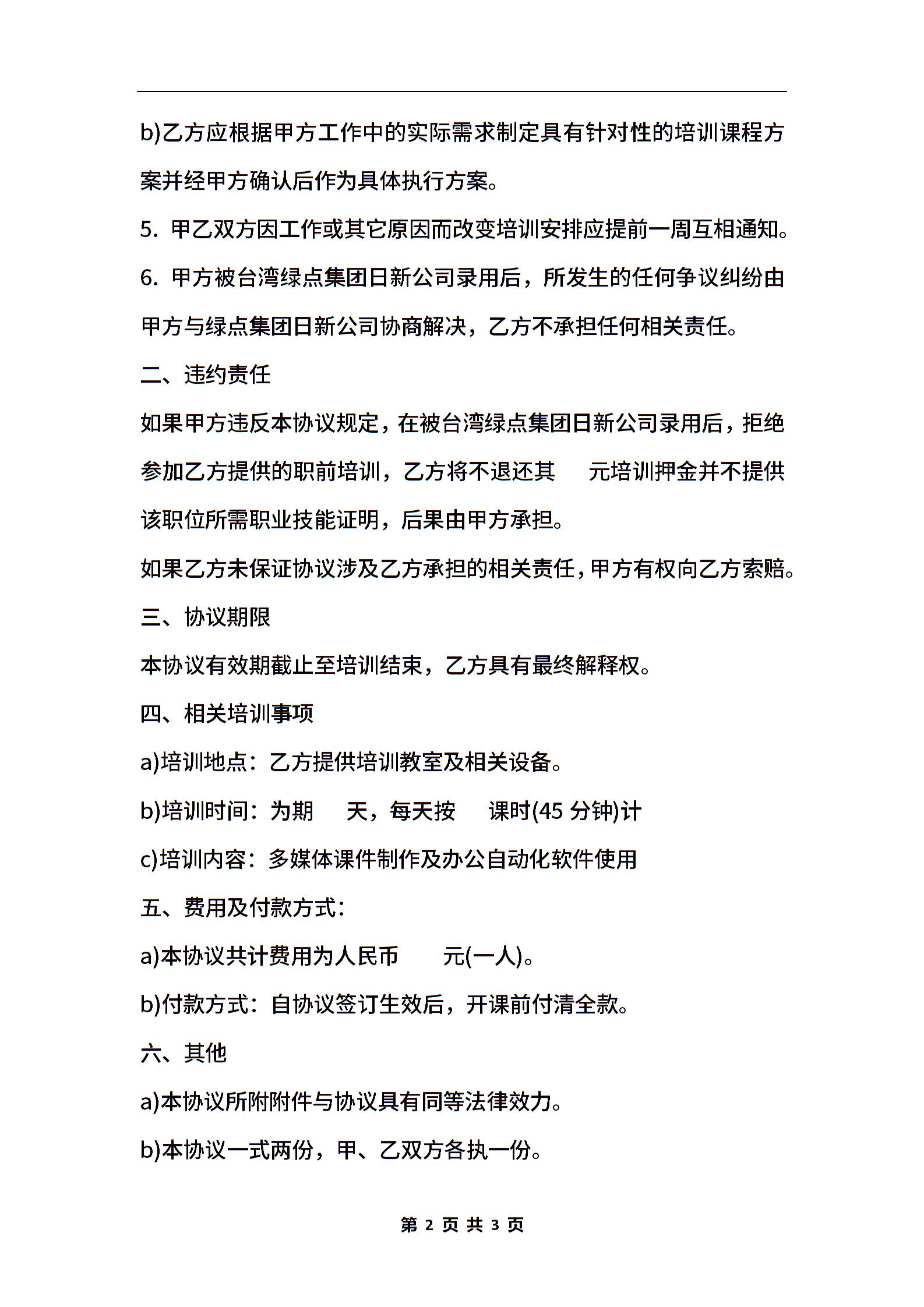 • 分类 培训协议