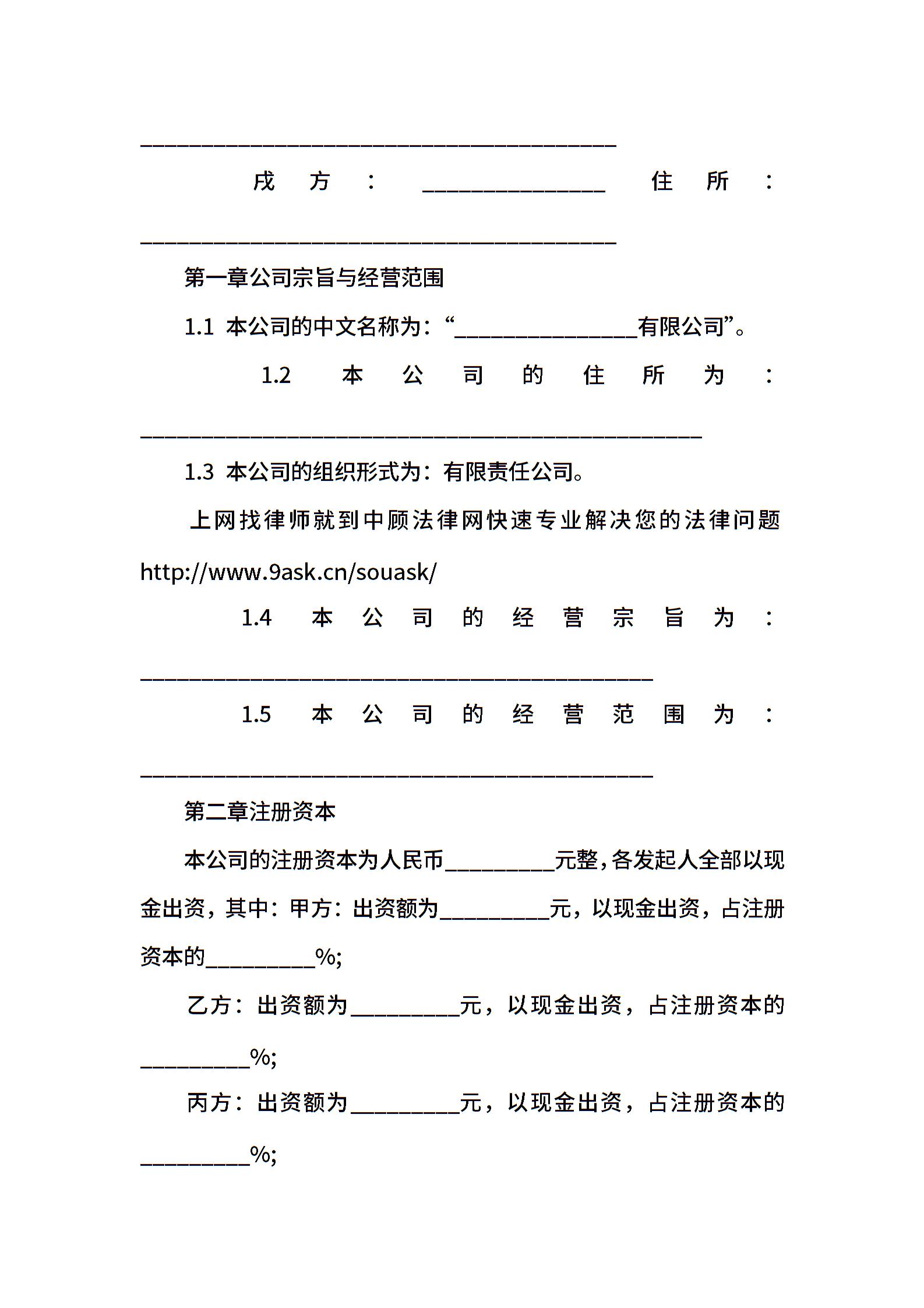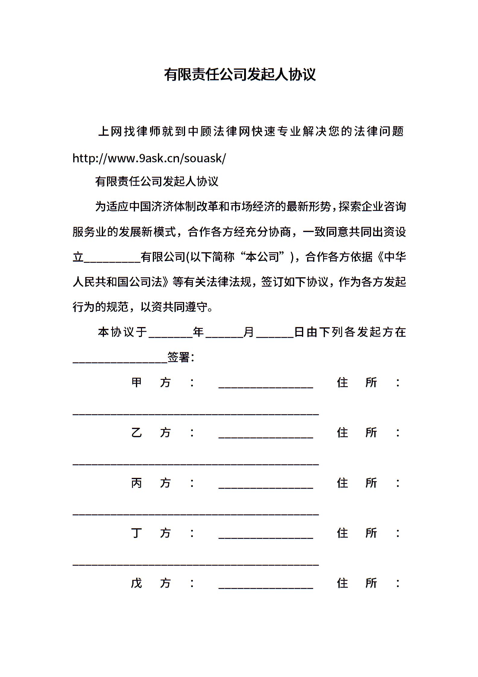 有限责任公司发起人协议