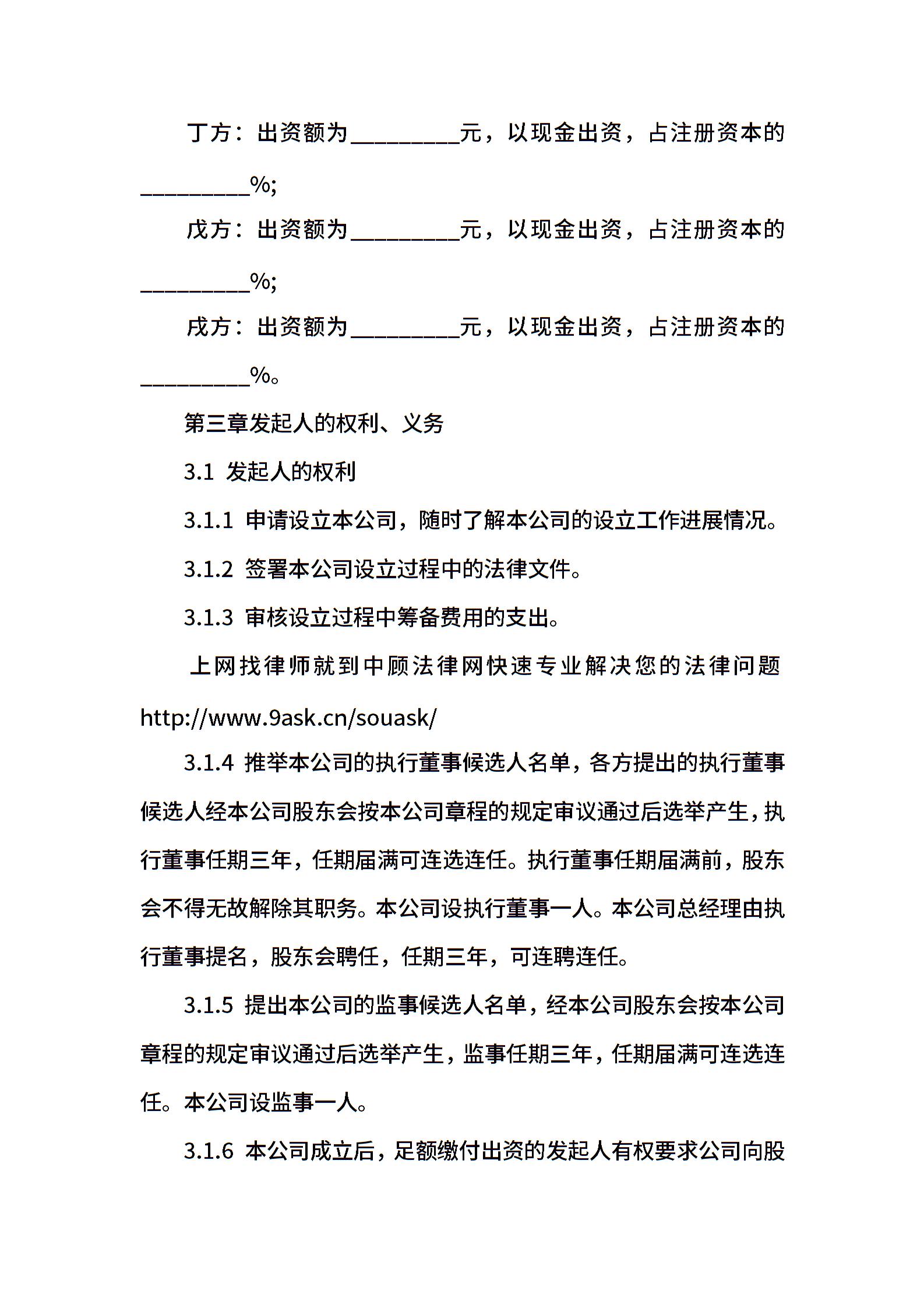 • 分类 发起人协议
