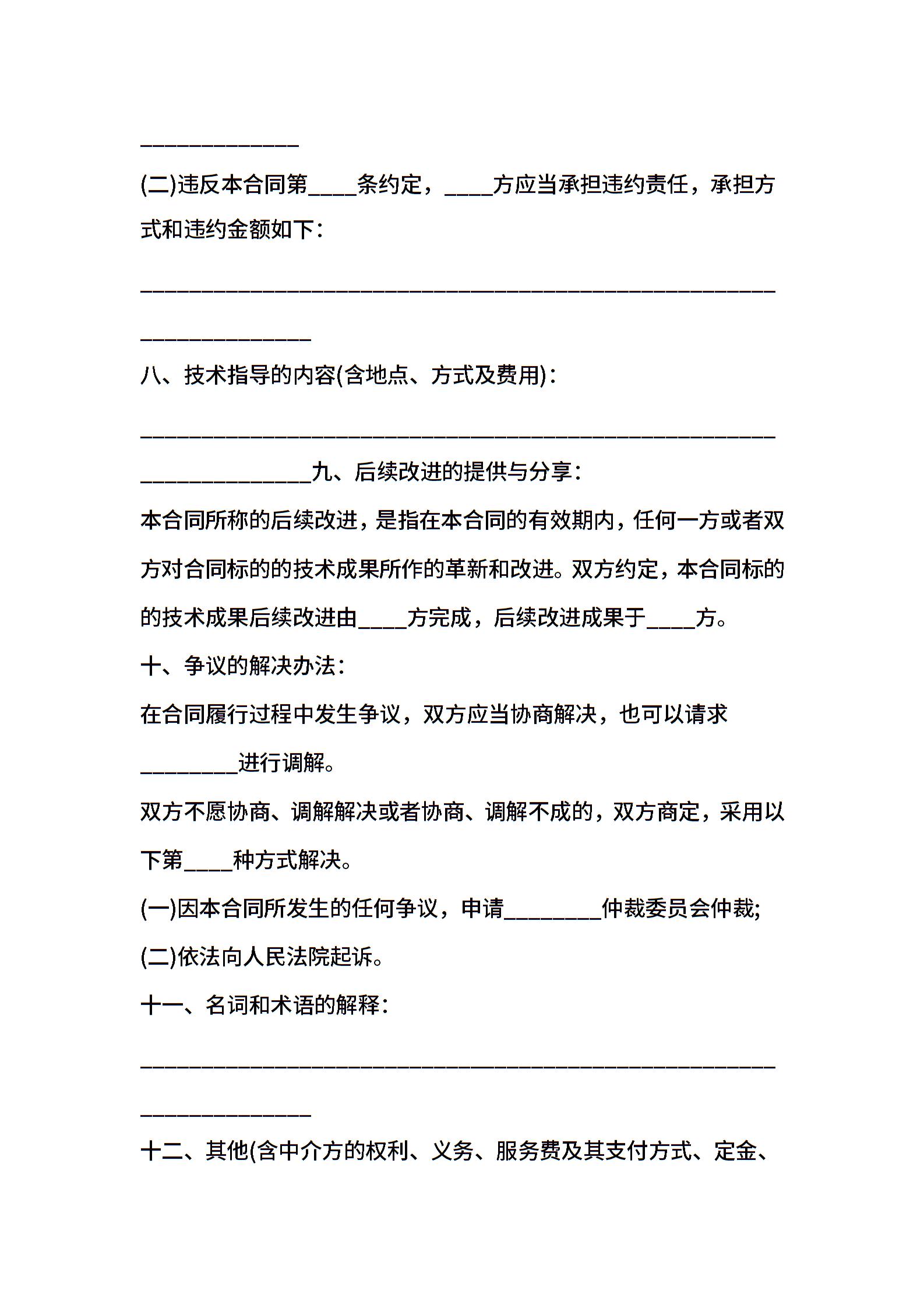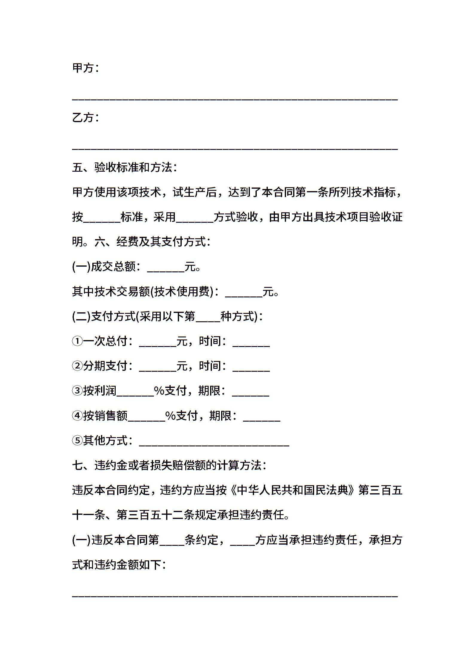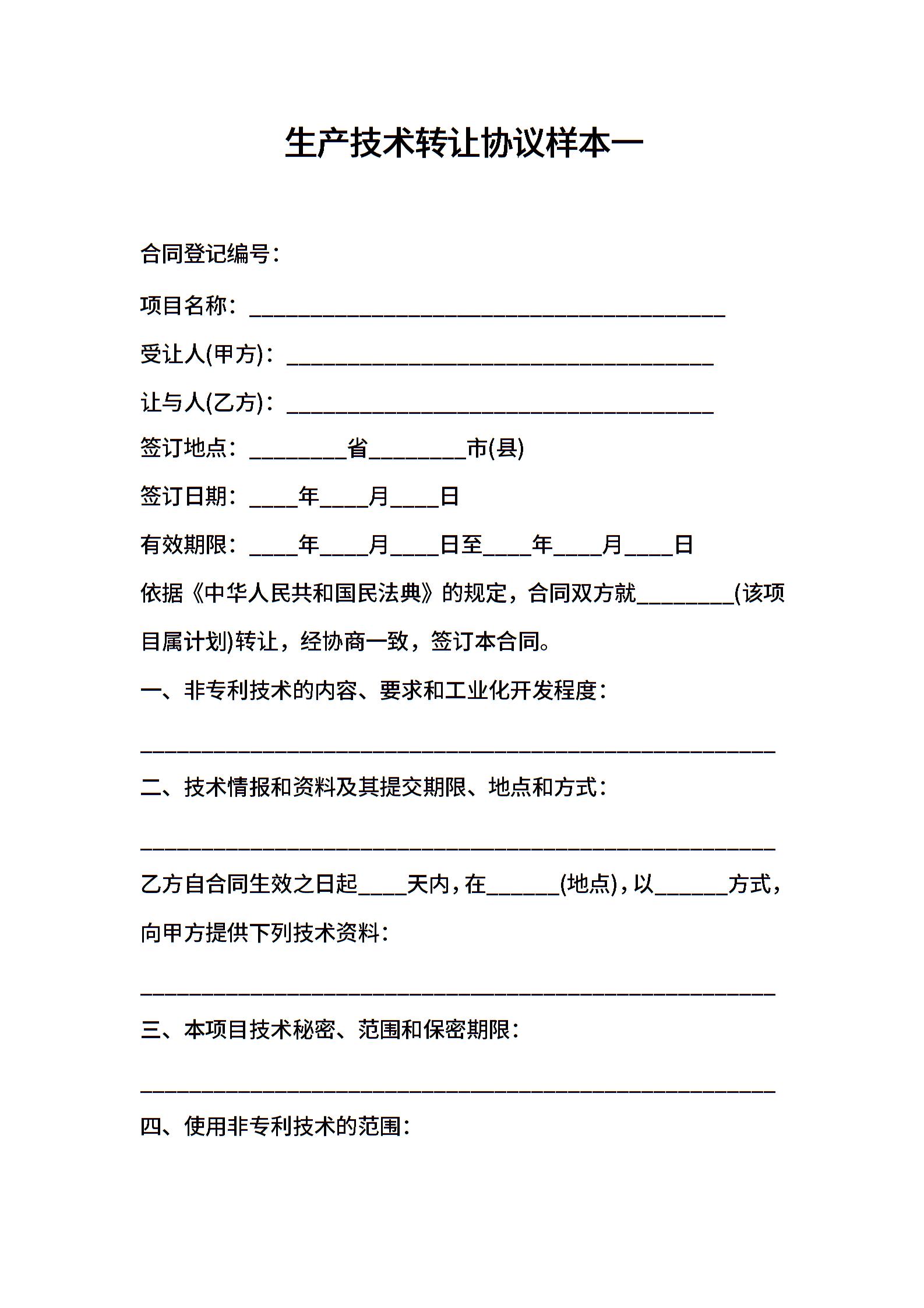 生产技术转让协议样本一