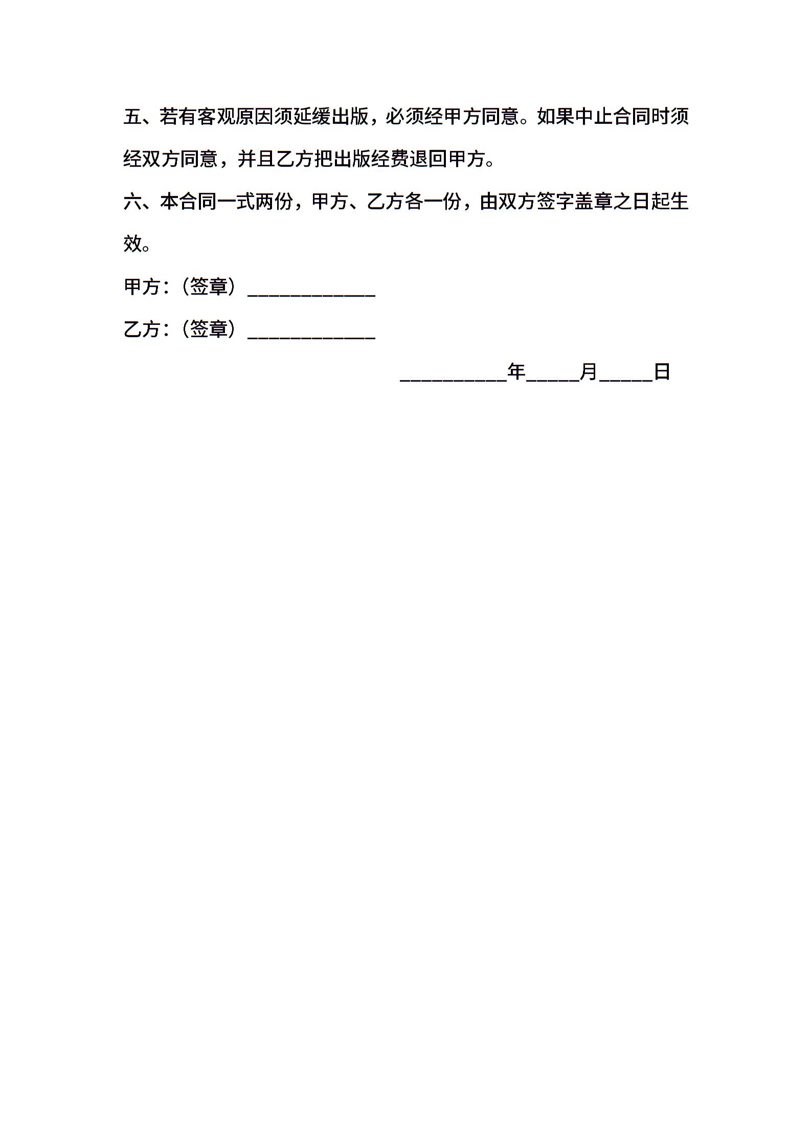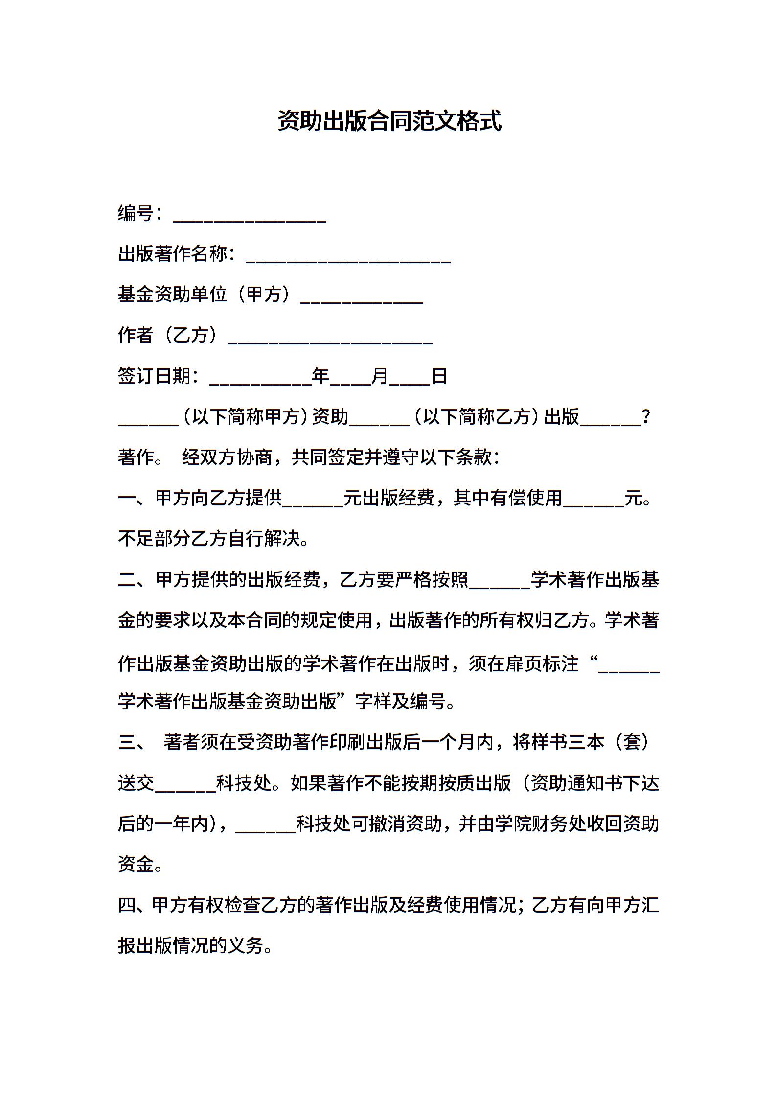 资助出版合同范文格式