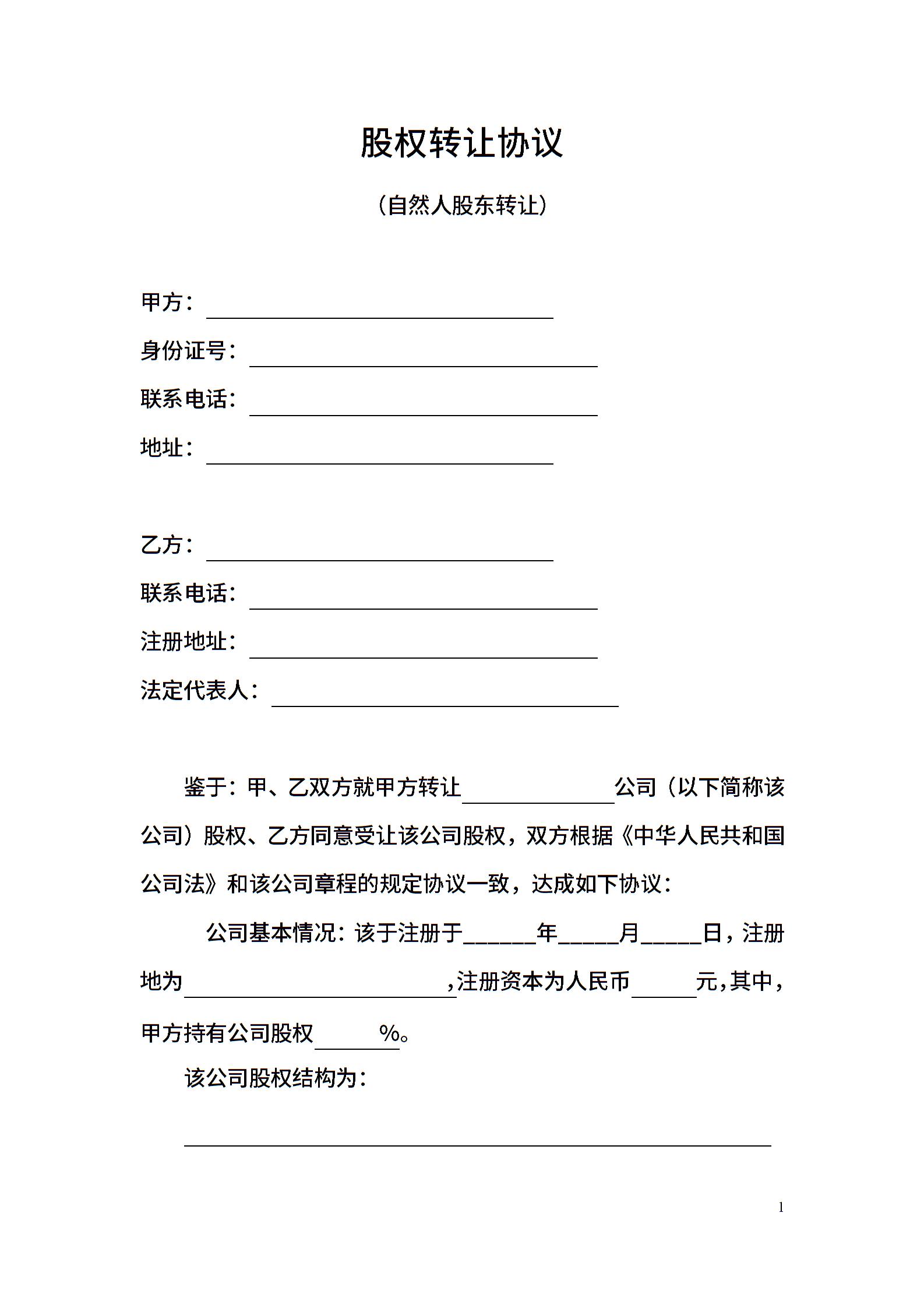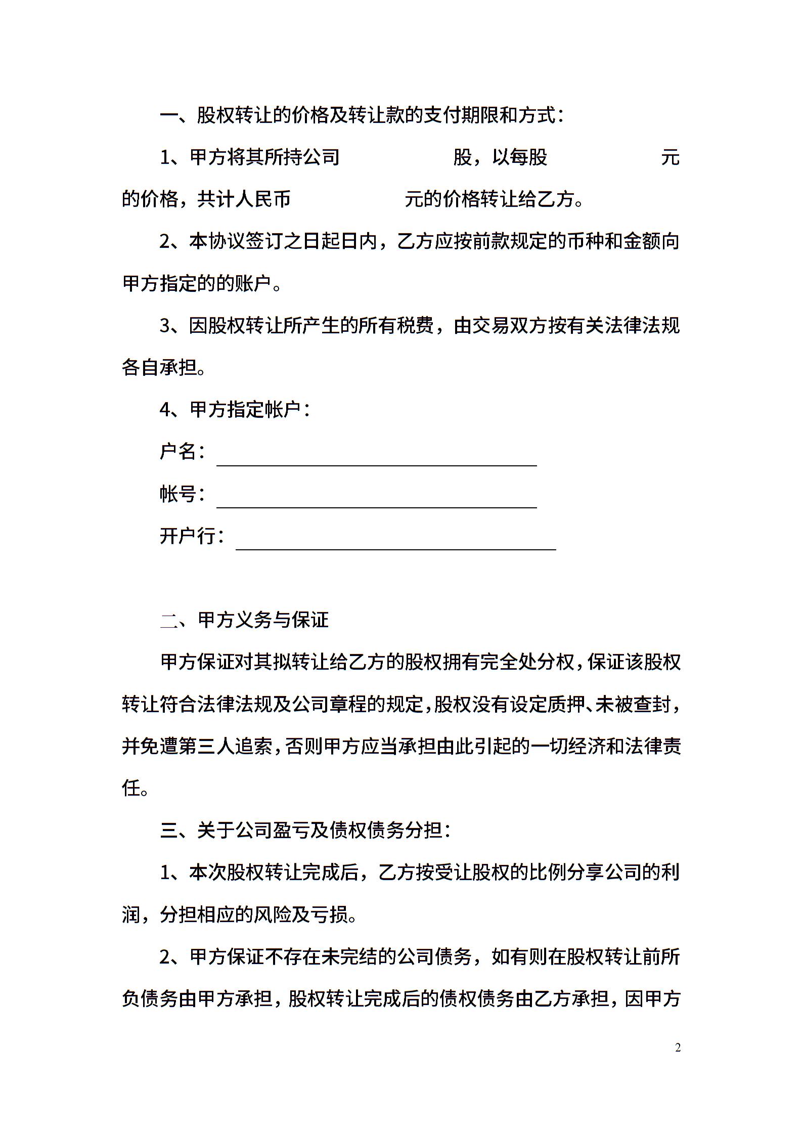 股权转让协议(通用一)