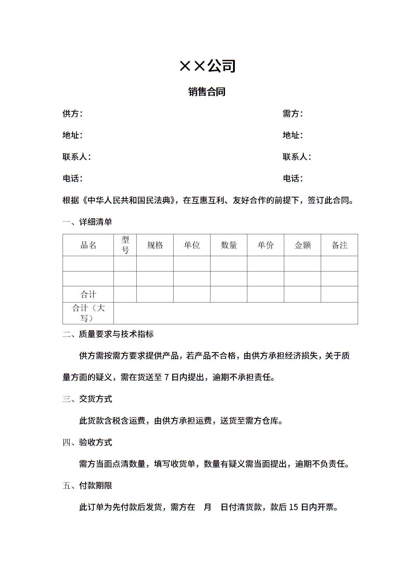 当前位置:量子办公 > 合同模板 > 销售合同 >